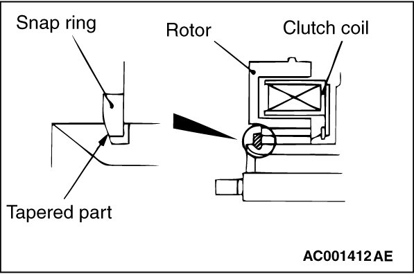 Using snap ring pliers, fit the snap ring so that the snap ring's tapered part is on the outside.