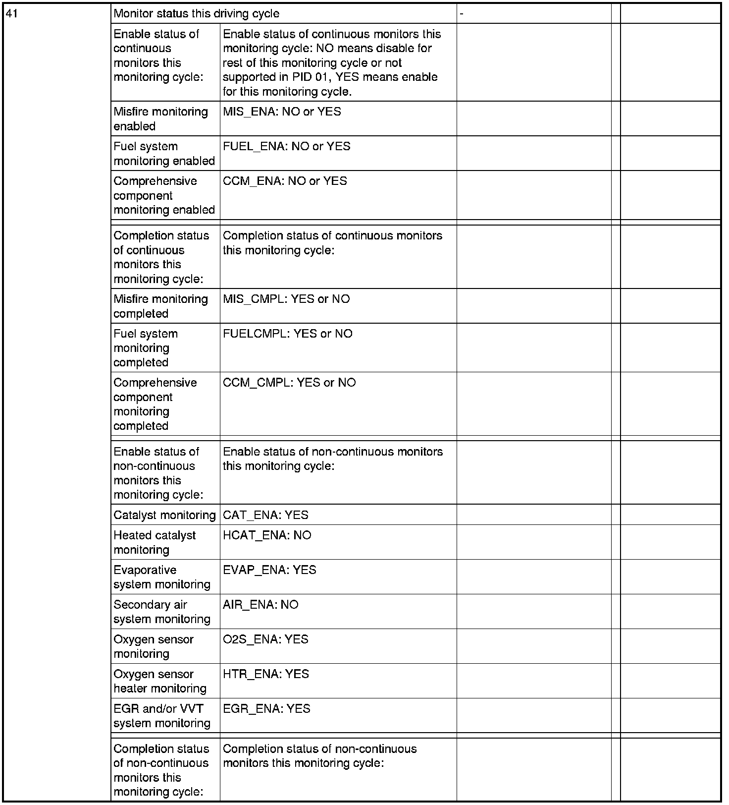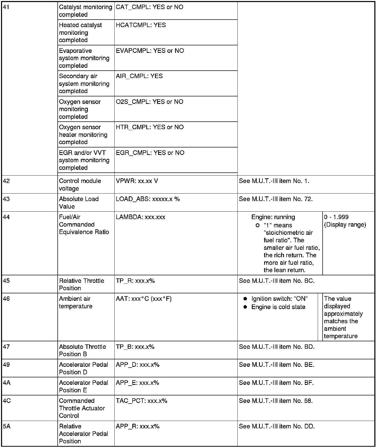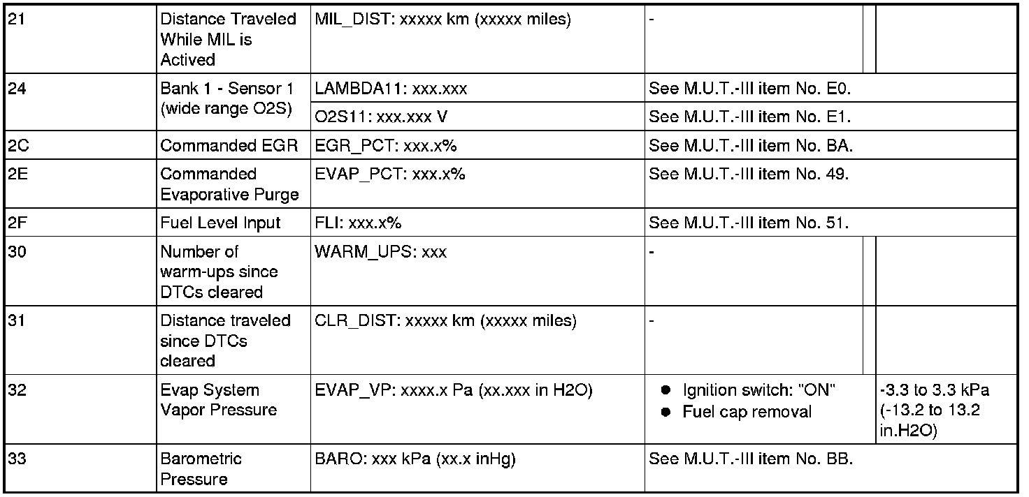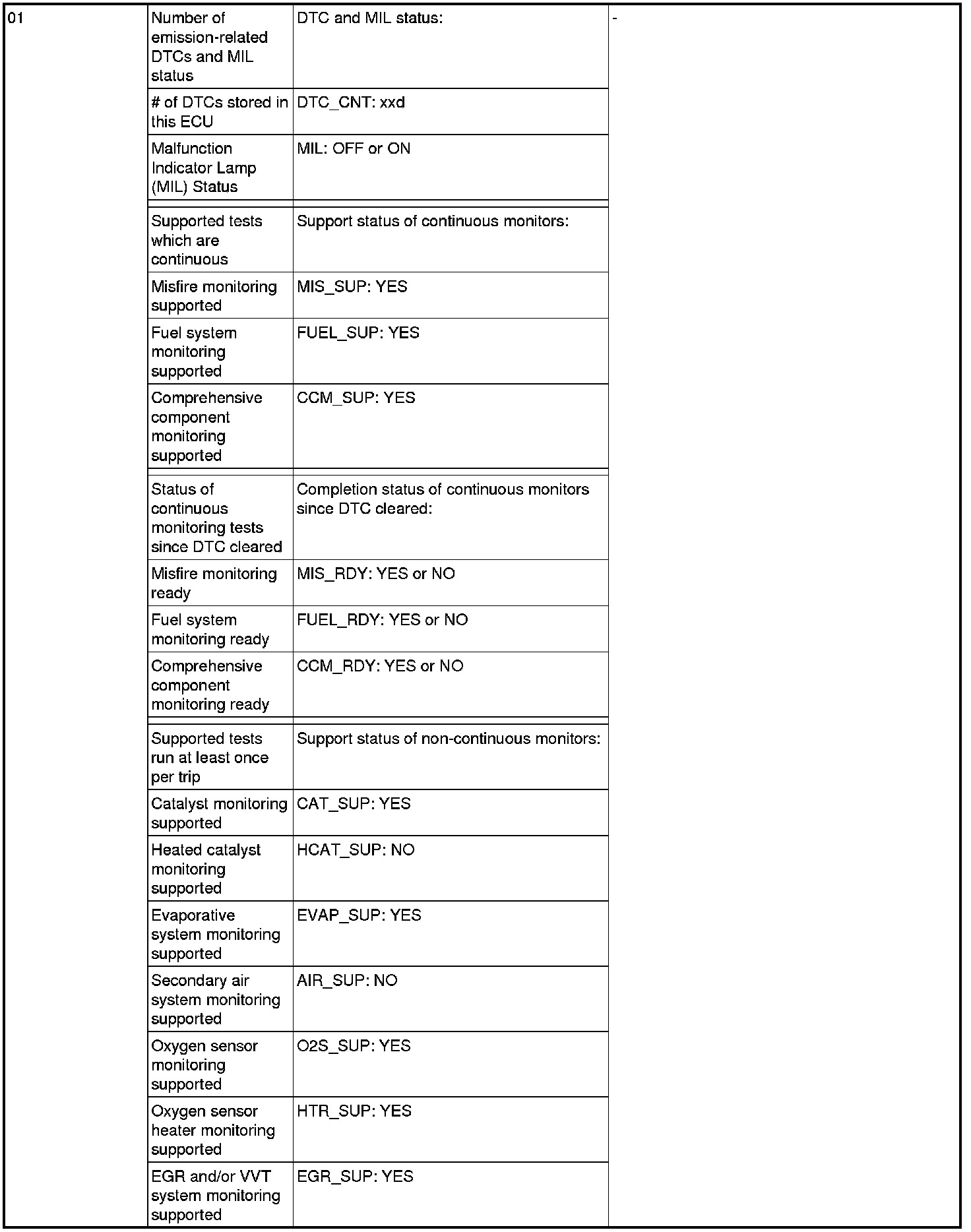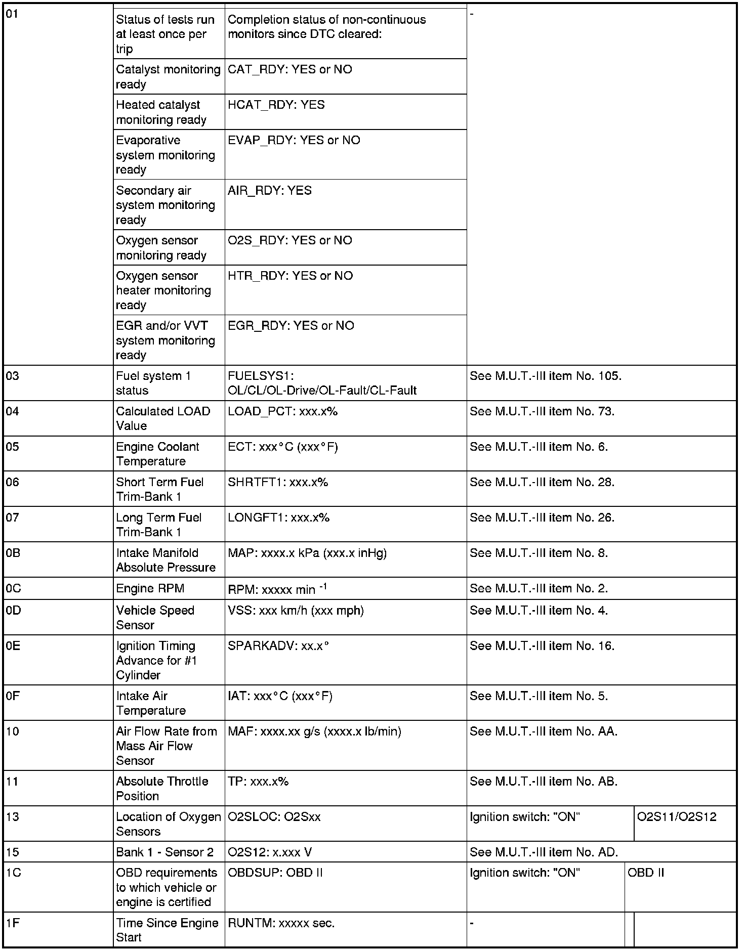 General Scan Tool (GST) Mode 01 Reference Table