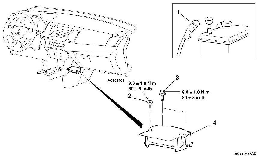 Home >> Mitsubishi >> 2012 >> Lancer AWD L4-2.4L (4B12) >> Repair and Diagnosis >> Relays and Modules >> Relays and Modules - Restraints and Safety Systems >> Air Bag Control Module >> Service and Repair