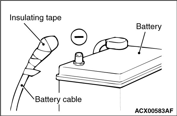 Disconnect the negative (-) battery cable from the battery and tape the terminal to prevent accidental connection and deployment.