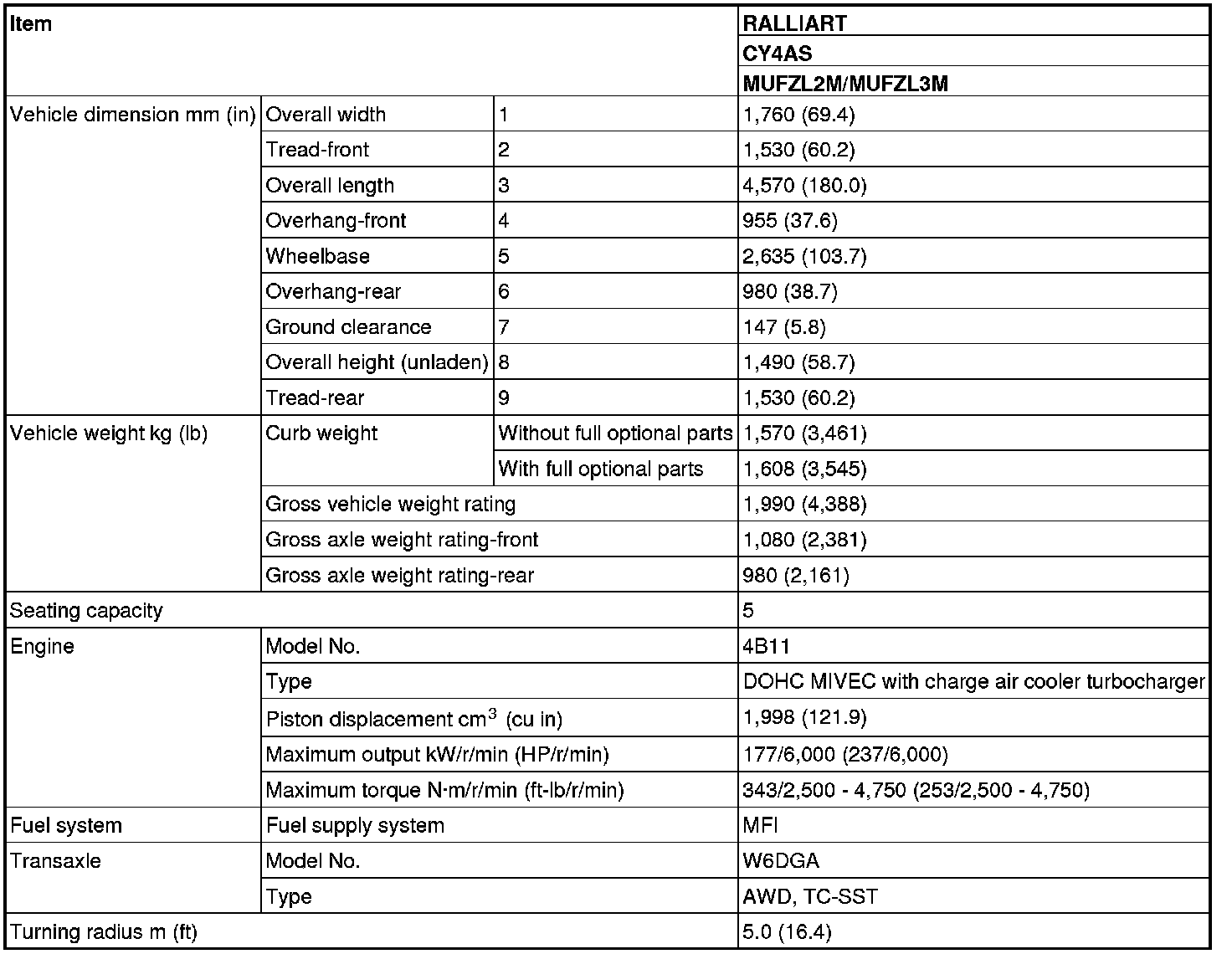 Lancer AWD L4-2.4L (4B12)