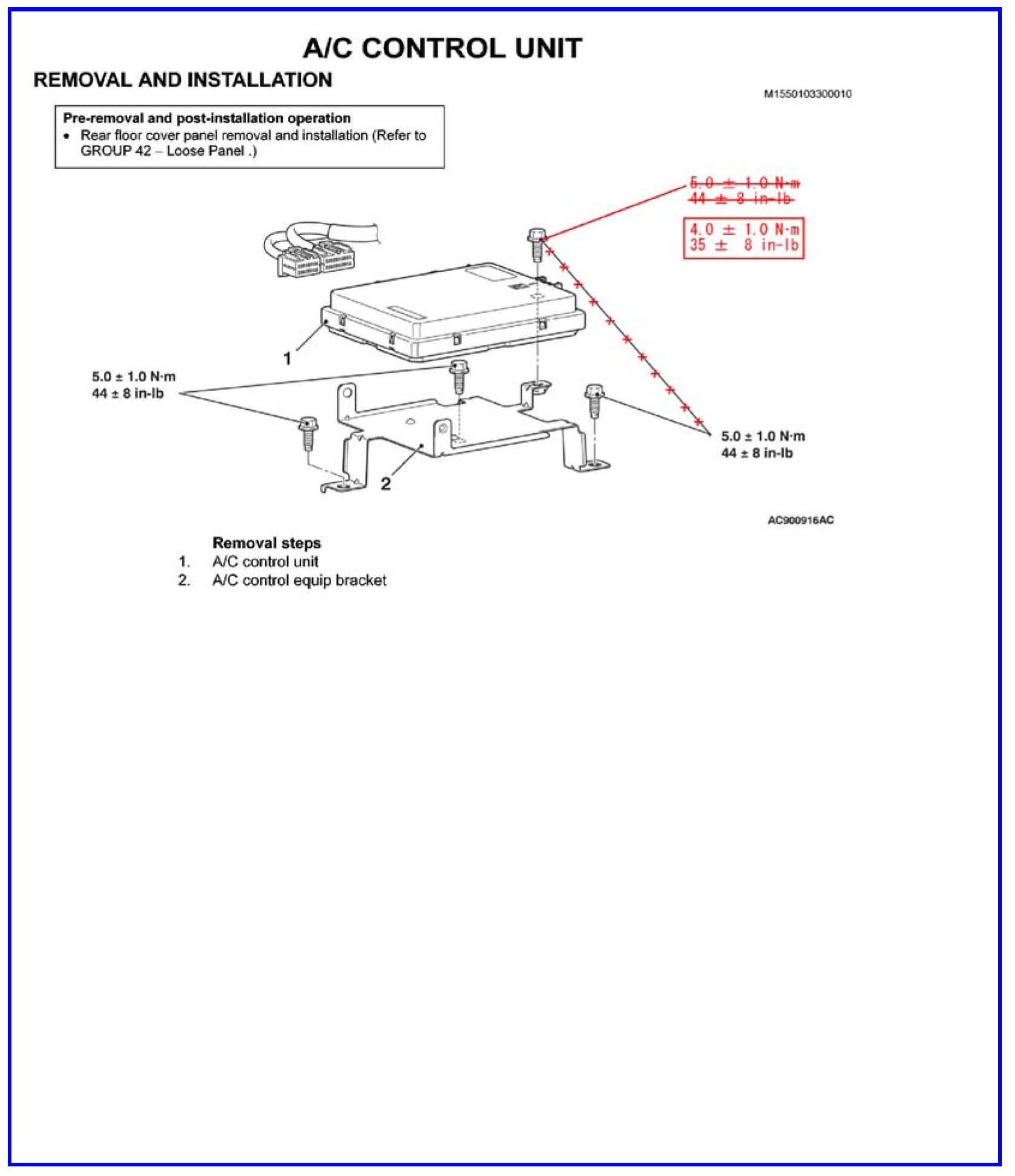 This TSB updates the torque specification for the A/C control unit mounting bolts.