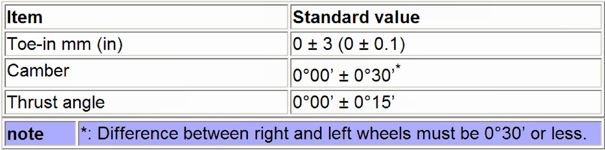Wheel Alignment Specifications