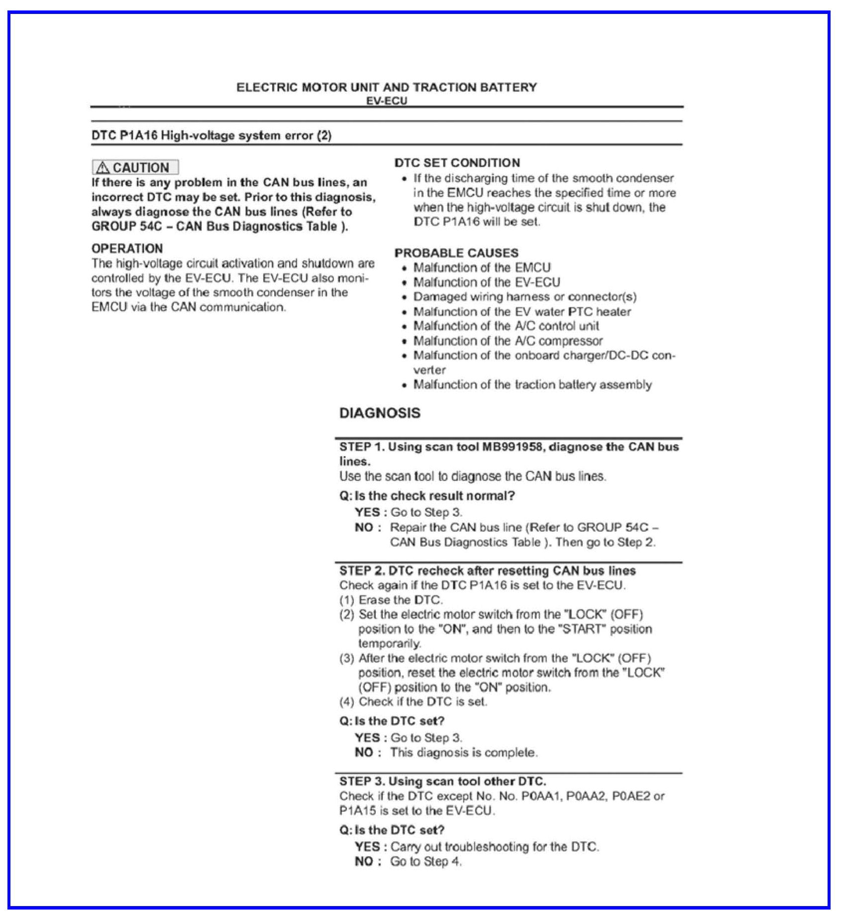 2012 i-MiEV Service Manual Group 54D: Electric Motor Unit and Traction Battery - EV-ECU - Diagnostic Trouble Control Procedures