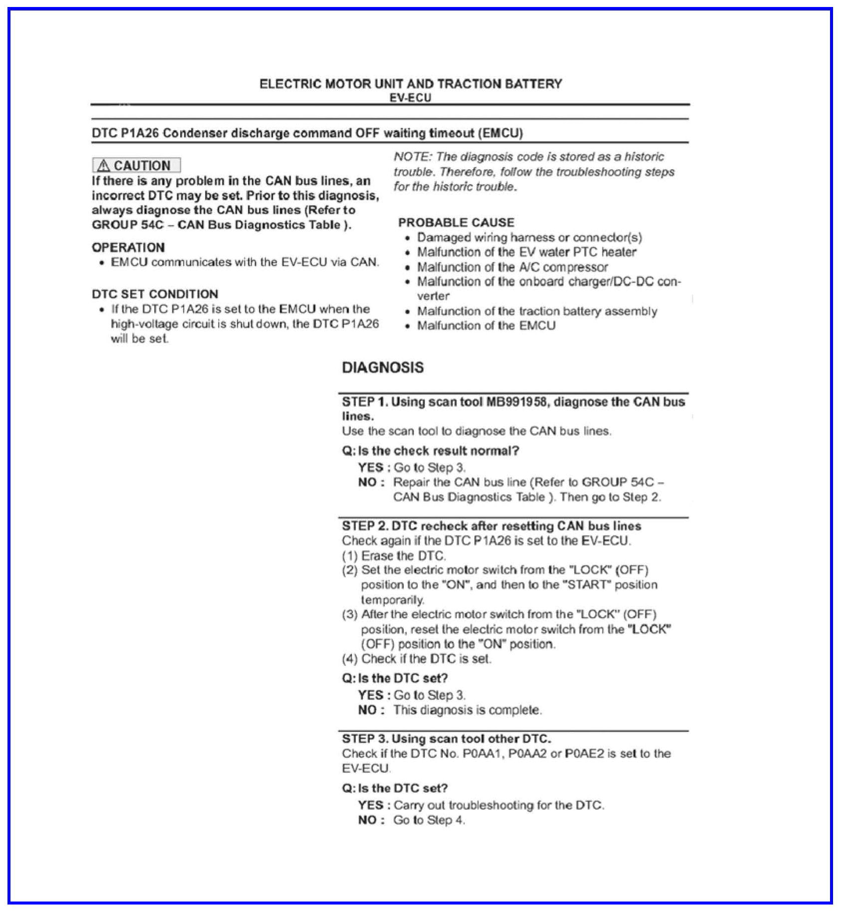 DTC P1A26 Condenser discharge command OFF waiting timeout (EMCU)