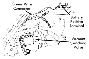 - Vacuum switching valve is okay if ignition timing advances 5° or more with green wire connected to battery voltage. If timing does not advance, replace vacuum switching valve.