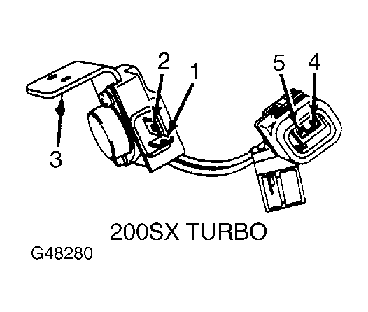 - If there is continuity, check power transistor. With ohmmeter positive lead on terminals No. 1, 4, 4 and 2, continuity should be found at terminals No. 5, 2, 3 and 3 respectively. See Fig 1 . If checks are okay, perform ECCS self-diagnosis procedure. If okay, end test. If not okay, replace ECCS control unit.