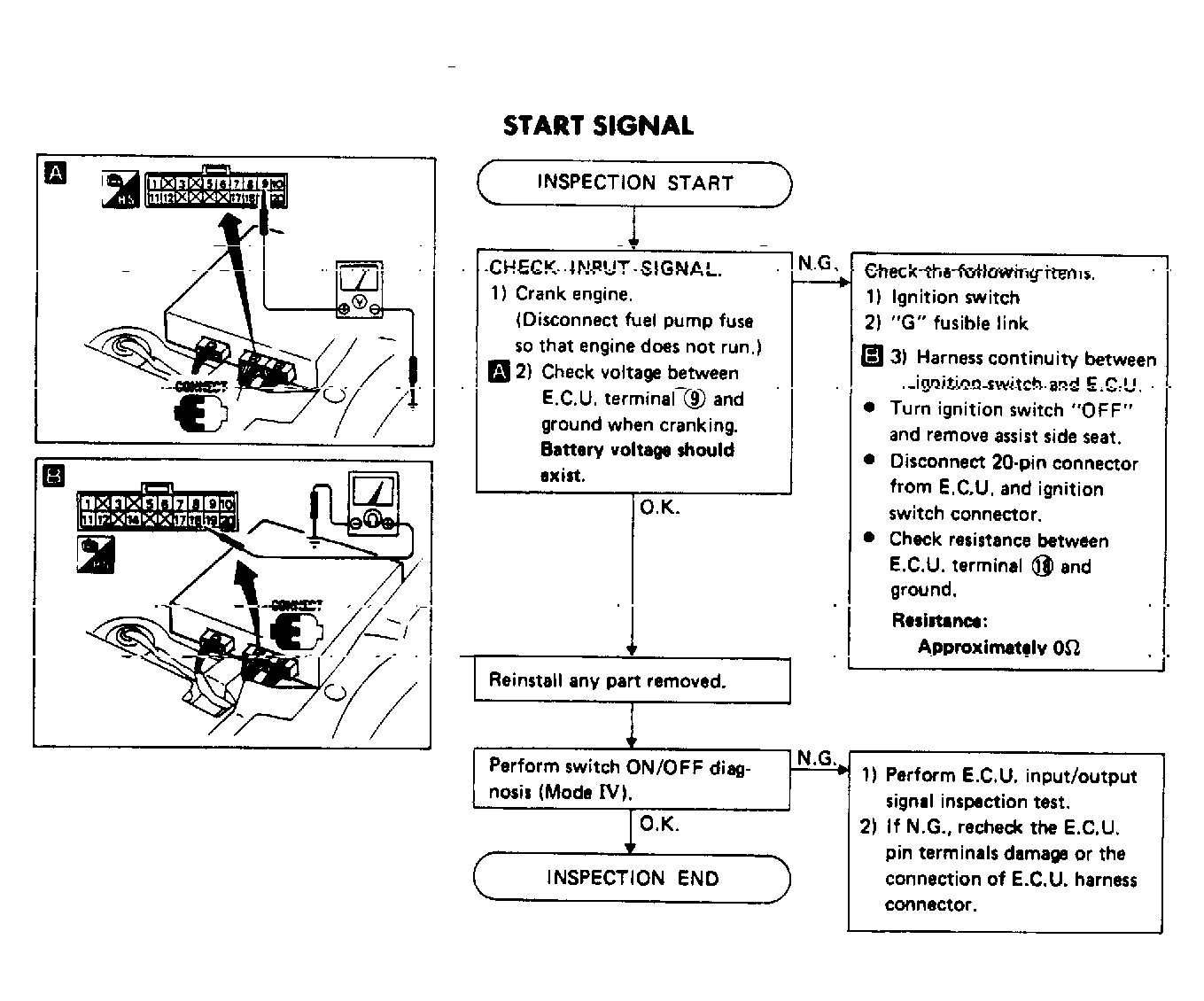 Start signal is used for ECU control of fuel pump and pressure regulator control solenoid. See Figure .
