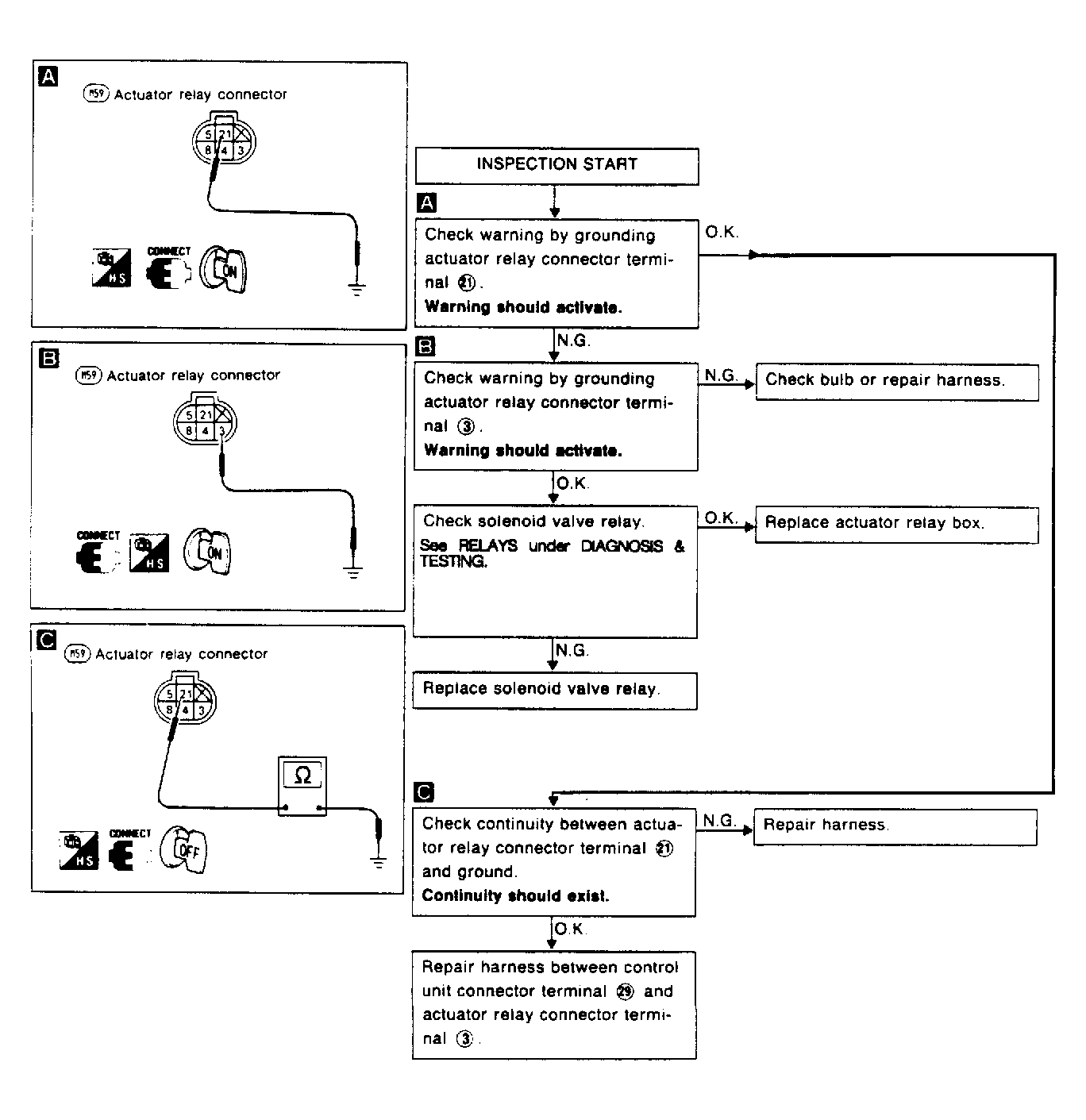 - Turn ignition on. ANTI-LOCK warning light on dash should illuminate. If light does not illuminate, go to DIAGNOSTIC PROCEDURE 7. See Figure .