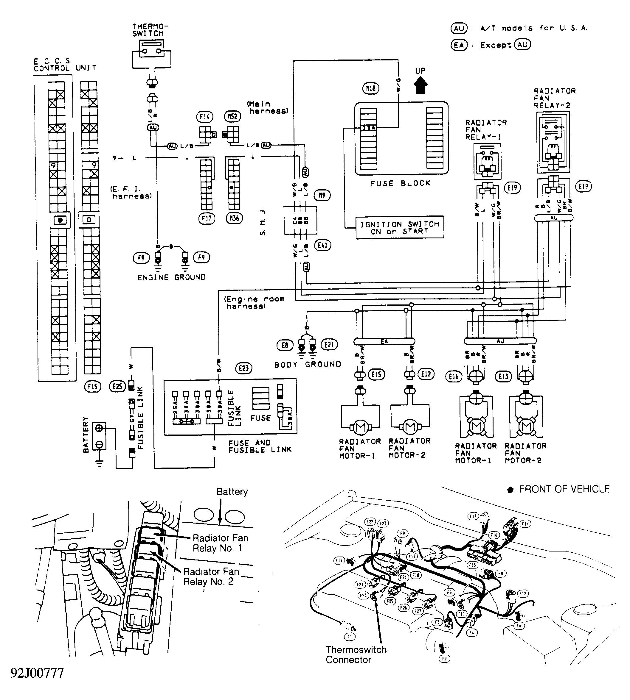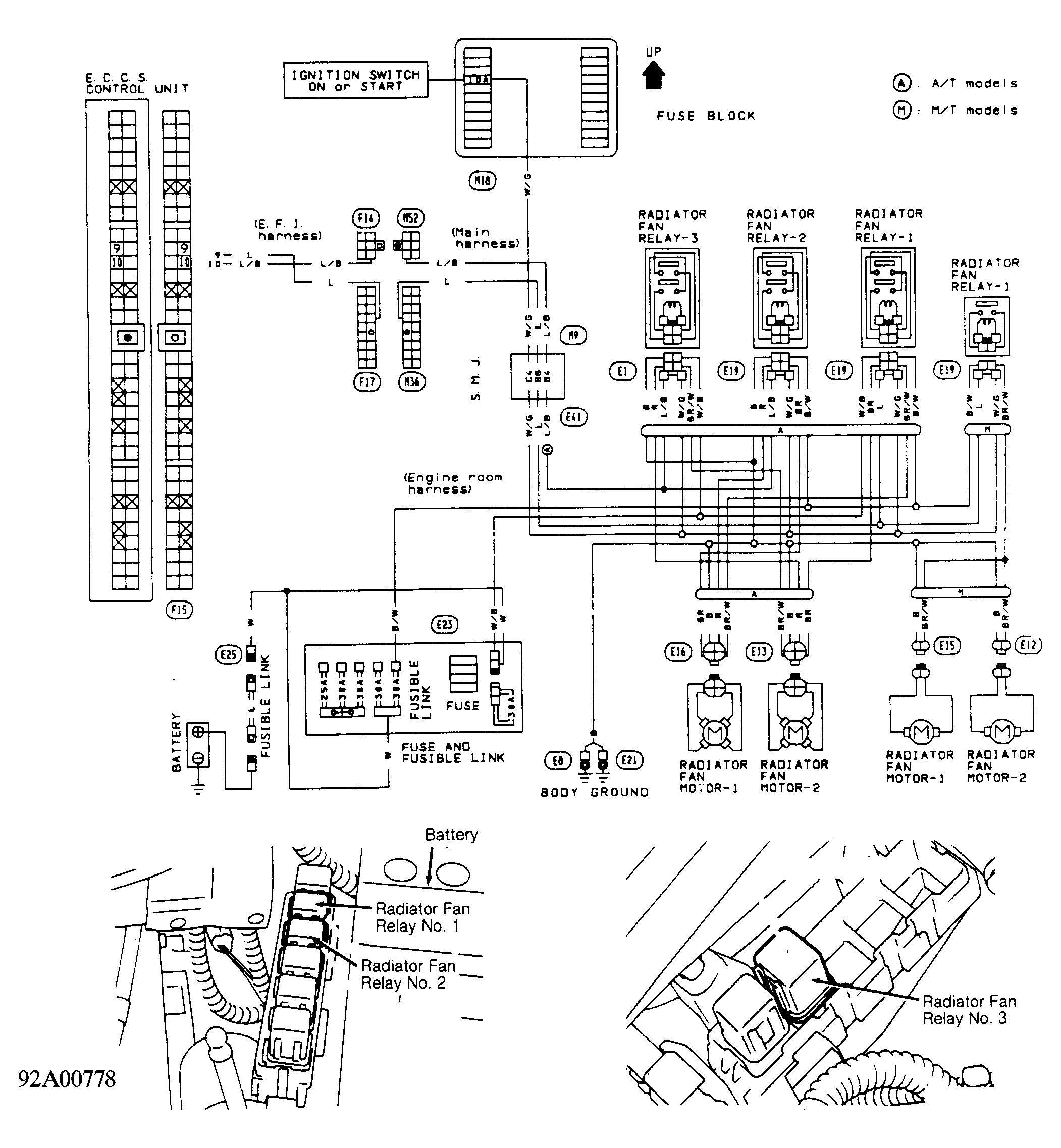 Warm engine to operating temperature. Cooling fan should come on. If equipped with A/C, engage A/C clutch using A/C switch in passenger compartment. Condenser cooling fan should come on. If fans do not function as described, check power supplies, grounds, relays, radiator fan switches and motors. If no faults are found, check component wiring. See Figure and Figure .