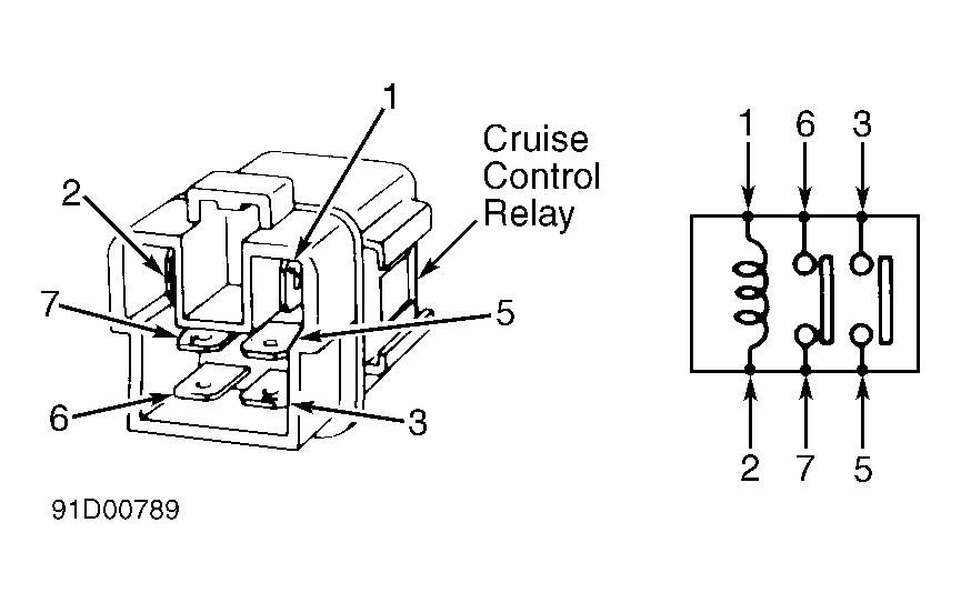 1. Check continuity between cruise control relay terminals No. 1 and 2. See Fig 1 . If there is continuity, go to step 2). If continuity is NOT present, replace relay.