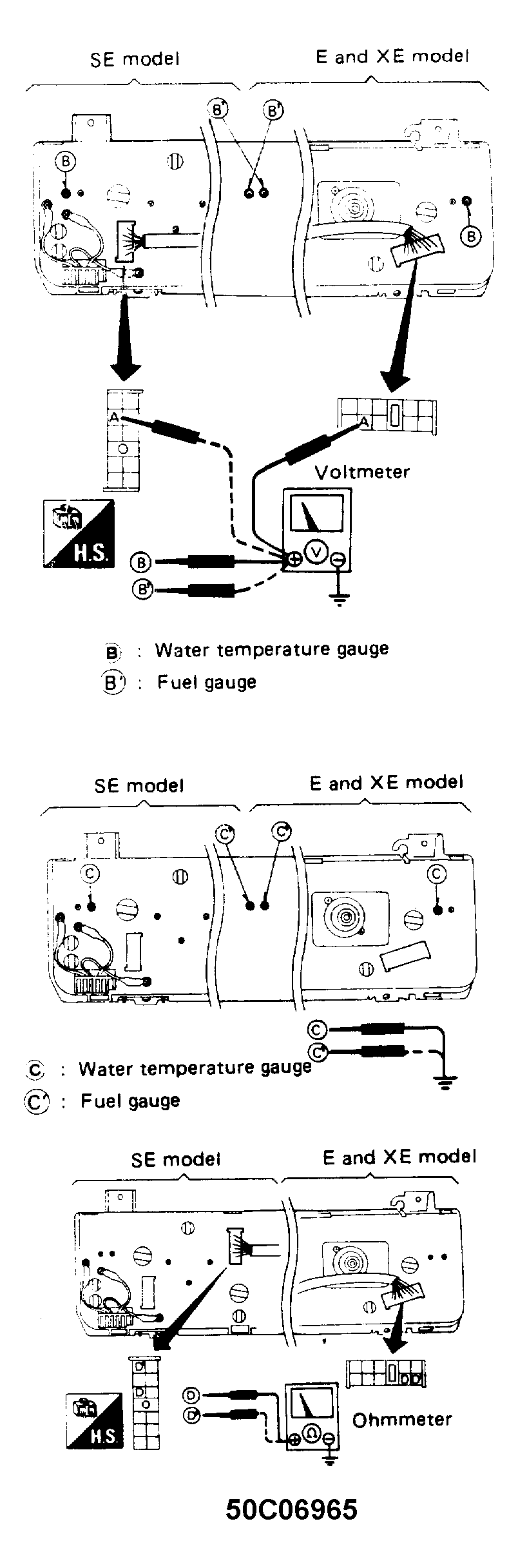 - If battery voltage is not present, check for blown fuse or fusible link. Check harness continuity between battery terminal and combination meter. Check for defective ignition relay and/or ignition switch.
