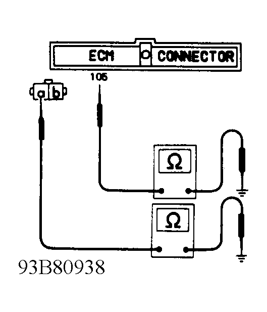 - Start engine. Connect voltmeter between ECM terminal No. 105 and ground. See Figure