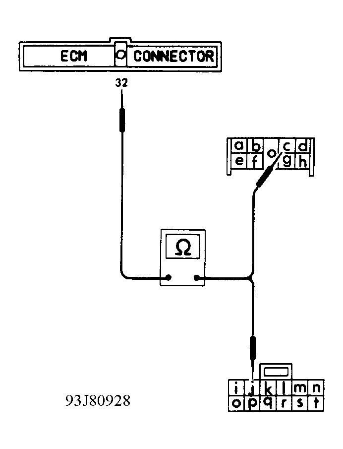 - Turn ignition off. Disconnect ECM and combination meter wiring harness connector. Check harness continuity between ECM terminal No. 32 and following combination meter terminals. See Figure