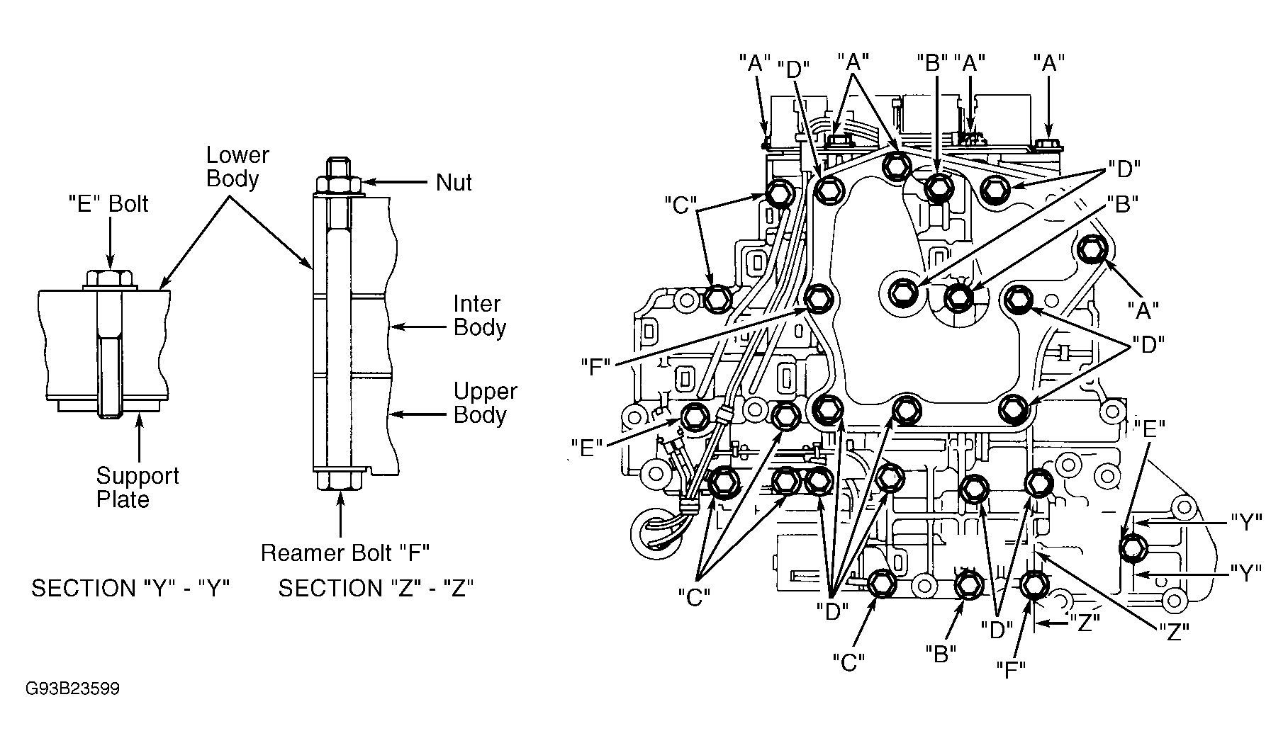 VALVE BODY BOLT IDENTIFICATION table.