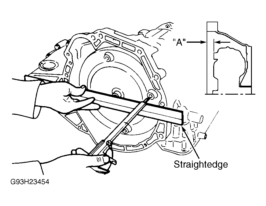 - Pour 1.1 qt. (1.0L) of ATF into torque converter and install torque converter. Measure distance "A" to ensure torque converter is installed correctly. See Fig 3. Distance "A" should be 0.63" (15.9 mm).