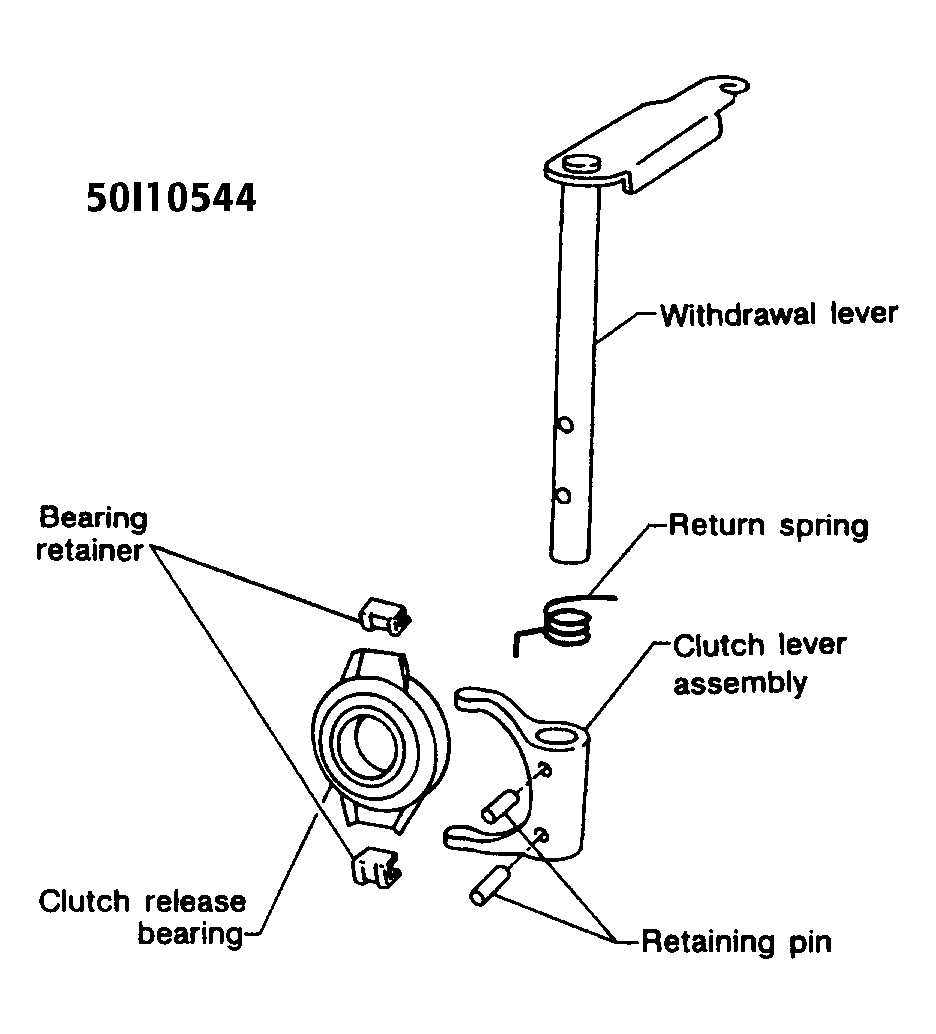 Clutch assembly is a single disc type with a diaphragm spring pressure plate. Sentra uses a mechanical control system consisting of clutch cable, release lever and release bearing. See Fig 1