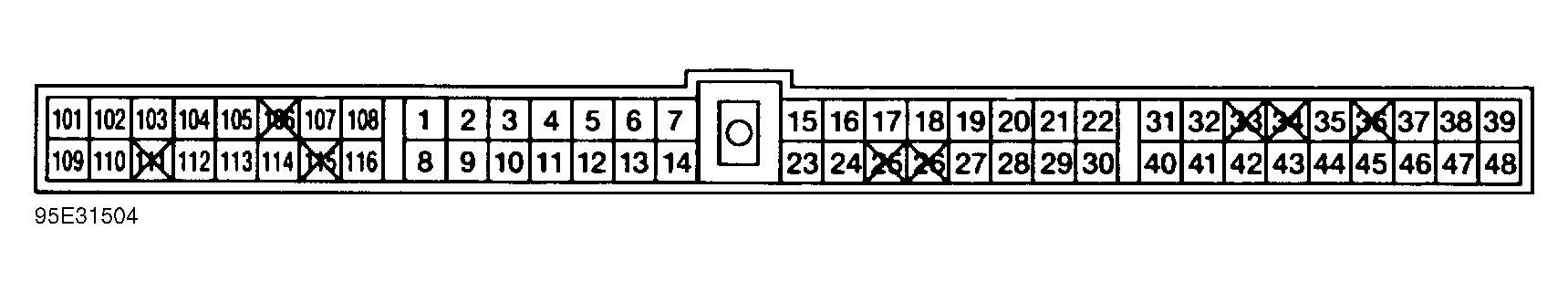 - Turn ignition off. Disconnect ECM harness connector. Check continuity between ground and ECM harness connector terminals No. 6 (Black wire), No. 13 (Black wire), No. 107 (Black wire), No. 108 (Black wire), and No. 116 (Black wire). Continuity should exist. If continuity does not exist, repair harness or connectors. If continuity exists, check ECM terminals and ECM harness connector terminals for damage or corrosion.