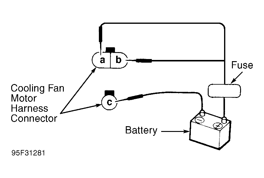 Disconnect fan motor harness connector(s). Apply battery across fan motor terminals and observe motor operation. See Fig 1 . See FAN MOTOR OPERATION TEST table. If motor does not operate as indicated, replace motor.