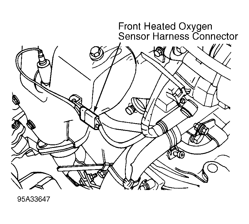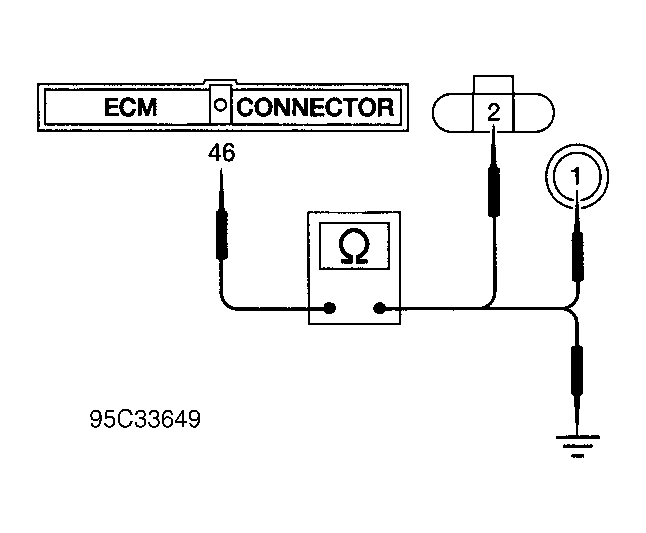 Turn ignition off. Disconnect front HO2S and ECM harness connectors. See Figure and Figure . On all models with HO2S, check harness continuity between ECM connector terminal No. 46 and HO2S connector terminal No. 2 (White wire). On all models without HO2S, check harness continuity between ECM connector terminal No. 46 and O2S connector terminal No. 1 (White wire). See Figure. Continuity should be present. On all models, check for continuity between ECM connector terminal No. 46 and ground, or between HO2S connector terminal White wire and ground. Continuity should not be present. If continuity is as specified, go to next step. If continuity is not as specified, repair harness or connectors as necessary. - Check Fuel Pressure