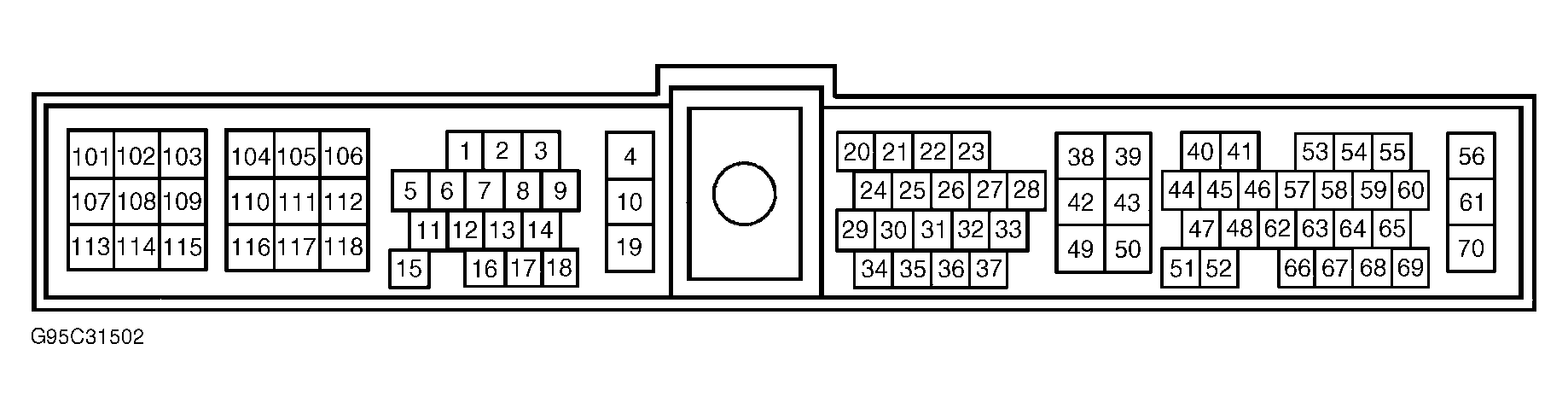 - Using an ohmmeter, check for continuity to ground on ECM terminals No. 10, 19, 39, 43, 50, 106, 112 and 118. See Figure . Resistance should be zero ohms. If resistance is not zero ohms, repair open to ground.