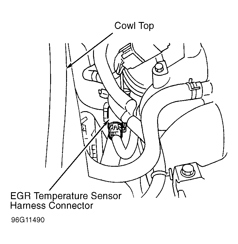 - Check Ground Circuit - Turn ignition off. Using an ohmmeter, check continuity between engine ground and EGR temperature sensor harness connector terminal No. 2 (Black wire). If no continuity exists, repair open in Black wire. If continuity exists, go to next step.