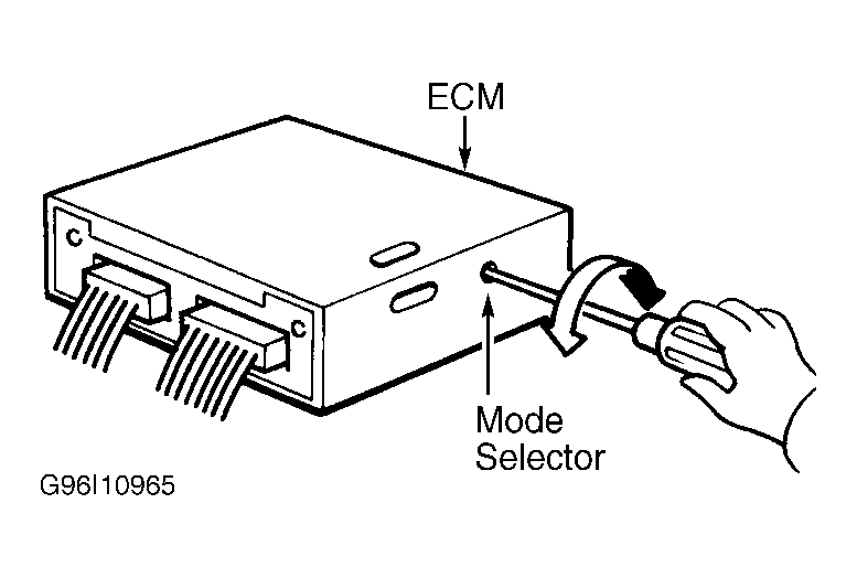 - To switch MIL output from Mode 1 to Mode 2, locate and gain access to ECM. See ECM LOCATIONS table. Turn ignition on. Using a screwdriver, turn test mode selector fully clockwise. See Fig 1. After 2 seconds, turn test mode selector fully counterclockwise (back to original position). MIL should now be in Mode 2. When in Mode 2 with key on and engine off, MIL should begin flashing codesNOTE: DTCs retrieved by MIL may also be referred to as flash codes.