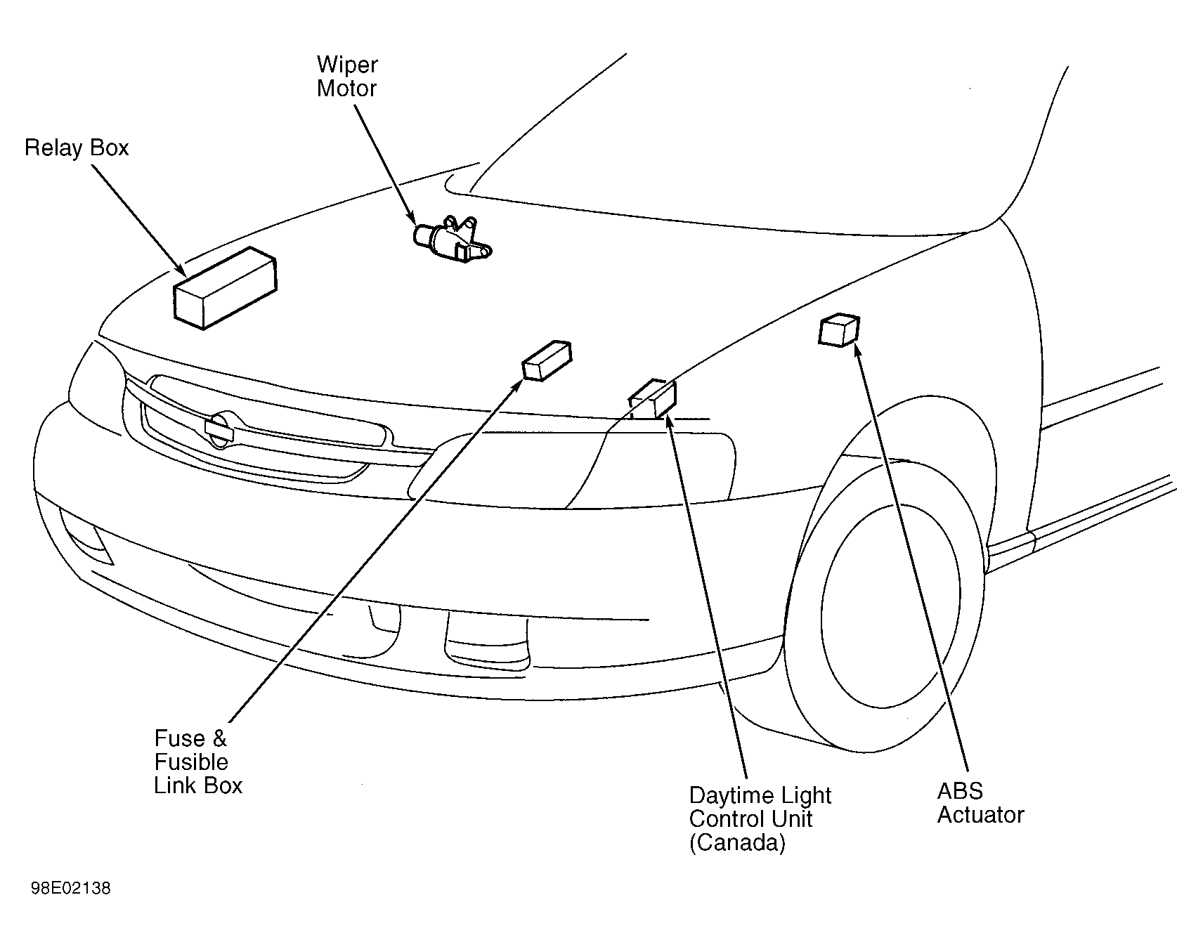 | Fuse & Fusible Link Box | On left side of engine compartment. See Figure. |