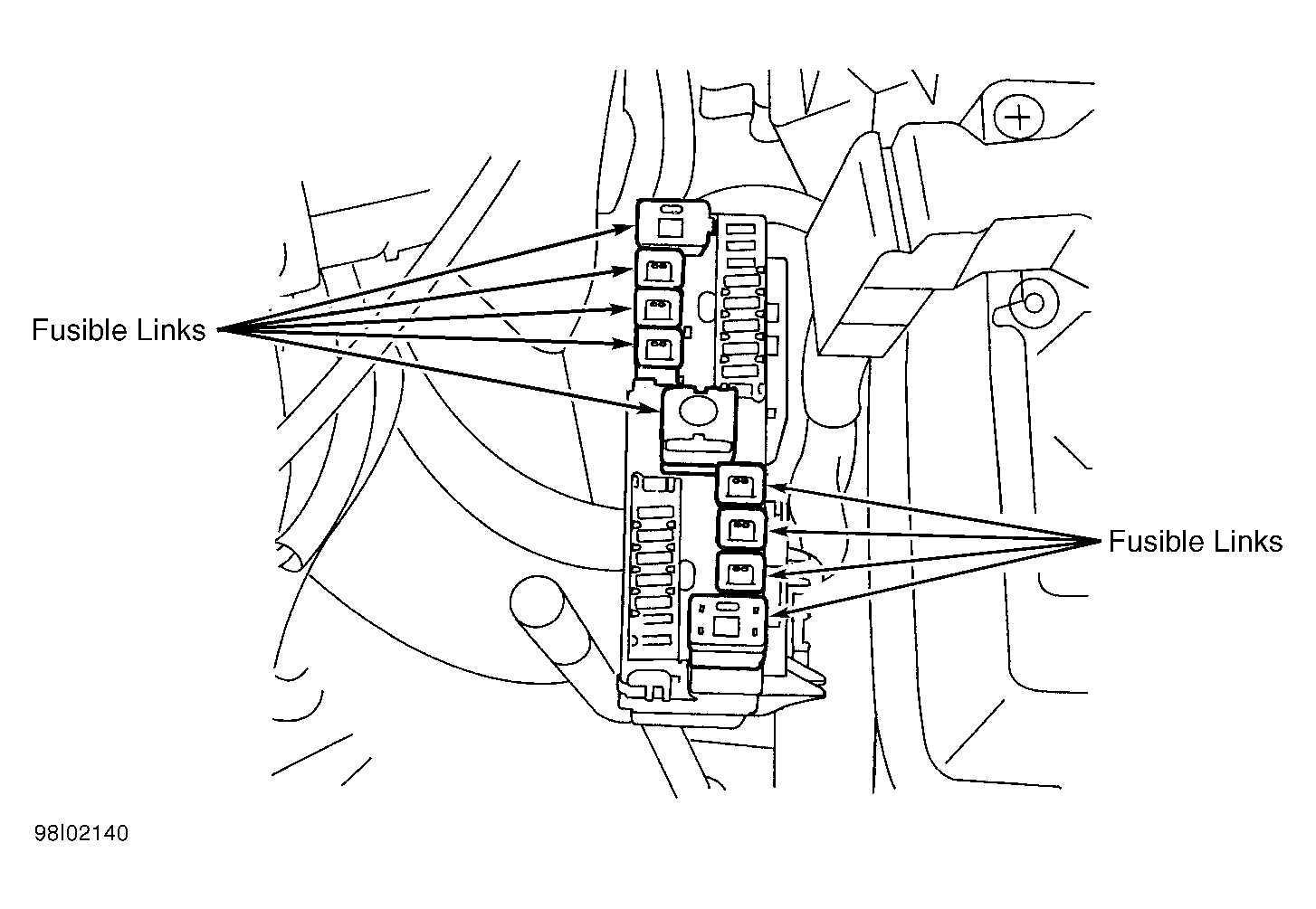 | Fusible Links | In fuse & fusible link box. See Figure. |