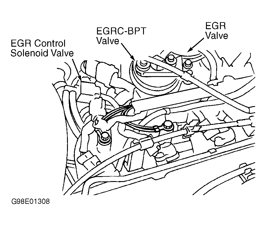 - Turn ignition off. Disconnect ECM harness connector. See Figure. Turn ignition on. Connect a jumper wire between ECM harness connector terminal No. 103 and ground. See Figure. Listen for EGRC solenoid operating sound while connecting and disconnecting jumper wire. If operating sound is heard, go to next step. If operating sound is not heard, repair EGRC solenoid or circuit and retest system. See DTC P1400: EGR CONTROL (EGRC) SOLENOID .