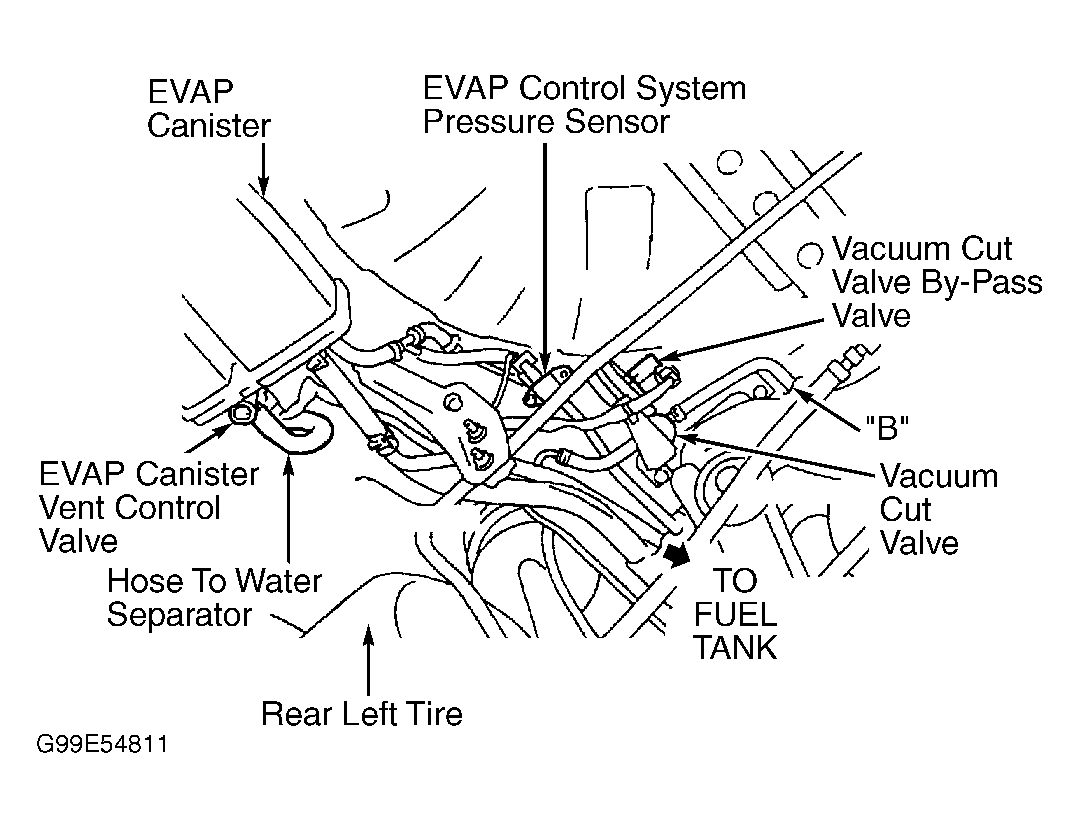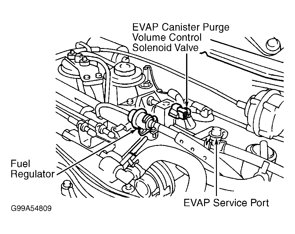 - Check EVAP canister for cracks. See Figure. Replace if necessary and retest system. If EVAP canister is not cracked, start engine and warm to normal operating temperature. Turn ignition off. Disconnect hose between EVAP service port and EVAP-CPVCV from EVAP service port. See Figure. Connect vacuum gauge to hose. Start engine and let it idle for at least 80 seconds. Vacuum should exist at hose. If vacuum exists, go to step 3. If vacuum does not exist, go to next step.