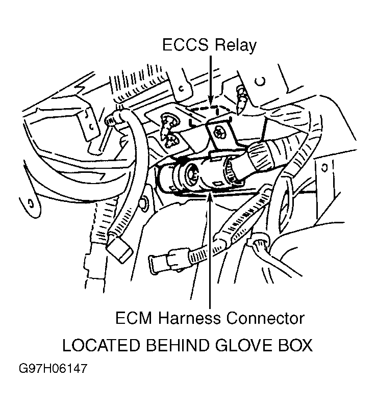 Fig 1: Locating PCM Harness Connector & ECCS Relay (Quest)