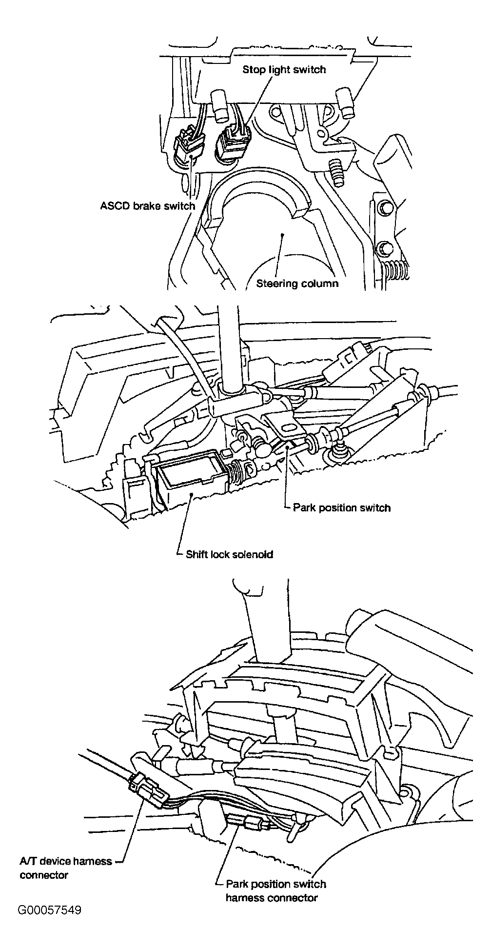 For shift lock component locations, refer to illustration. See