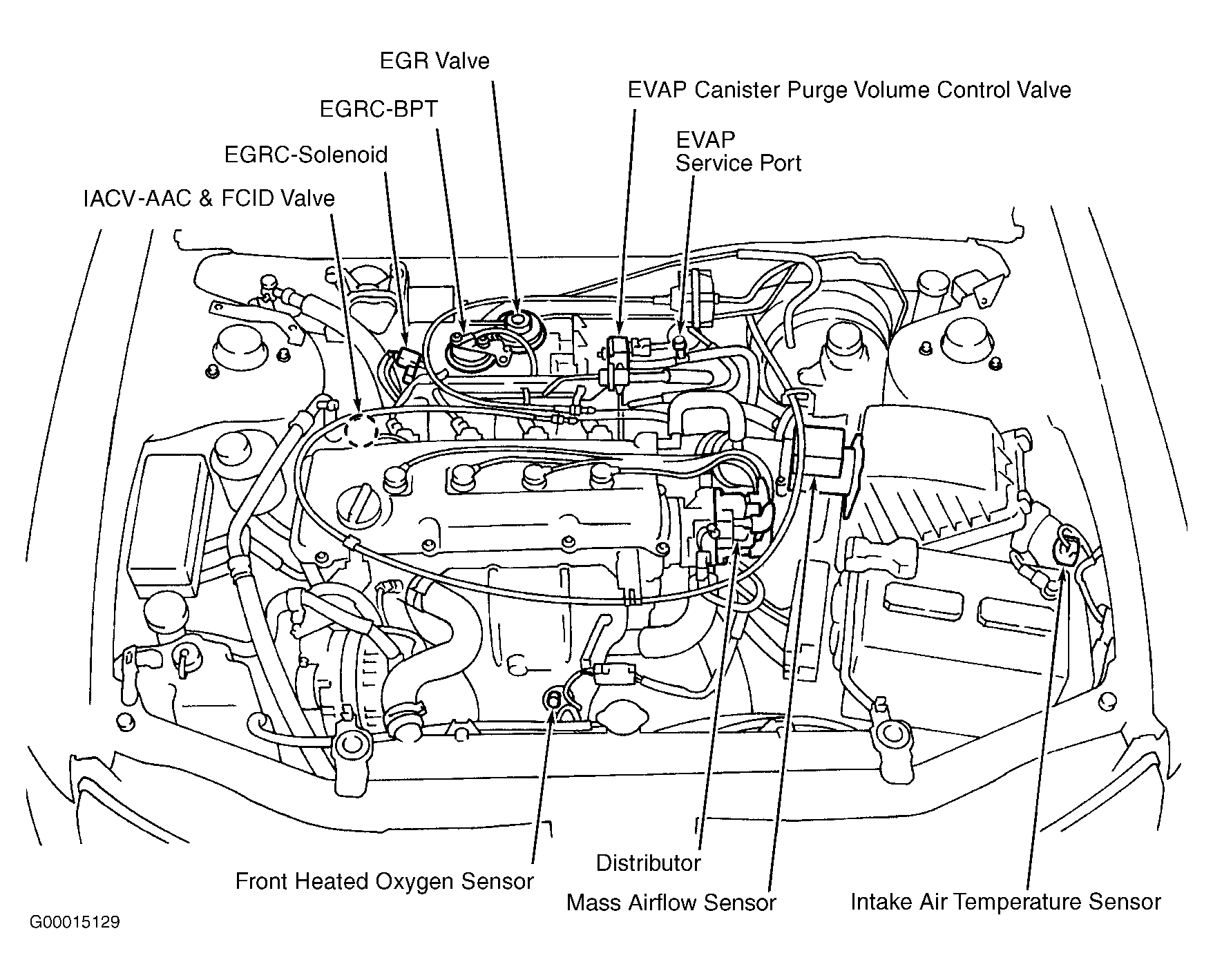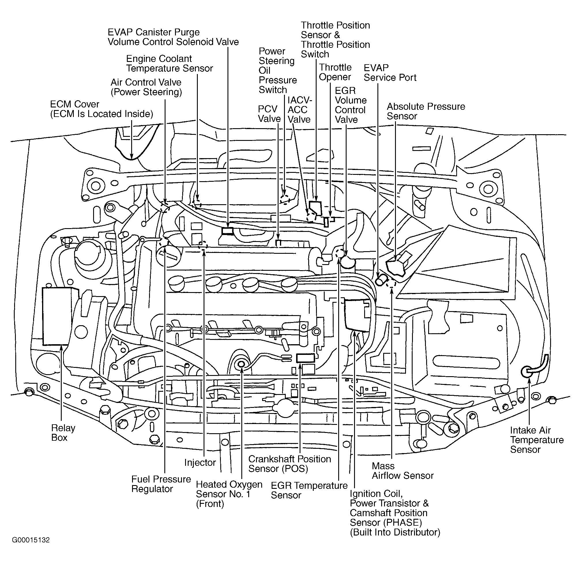Fig 2: Identifying Underhood Engine Performance Component Locations (Frontier 2.4L & Xterra 2.4L)