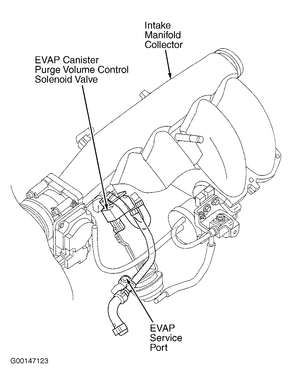 1. Connect EVAP Service Port Adapter (J41413-OBD) to EVAP service port. See Figure or Figure . Connect a suitable pressure pump with hose and gauge to adapter.