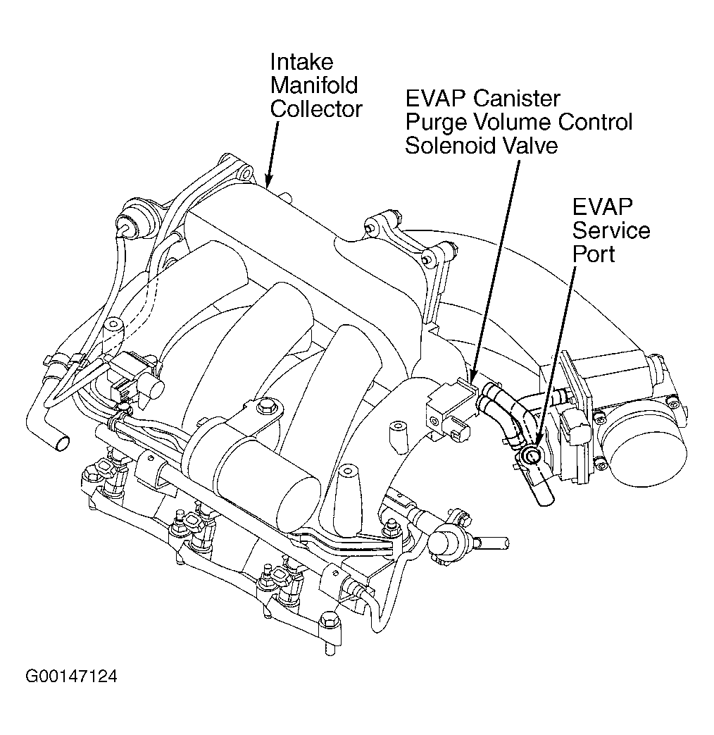 CAUTION: To avoid damage to EVAP system, do not use compressed air. Do not start engine. Do not exceed .6 psi (4.12 kPa).
