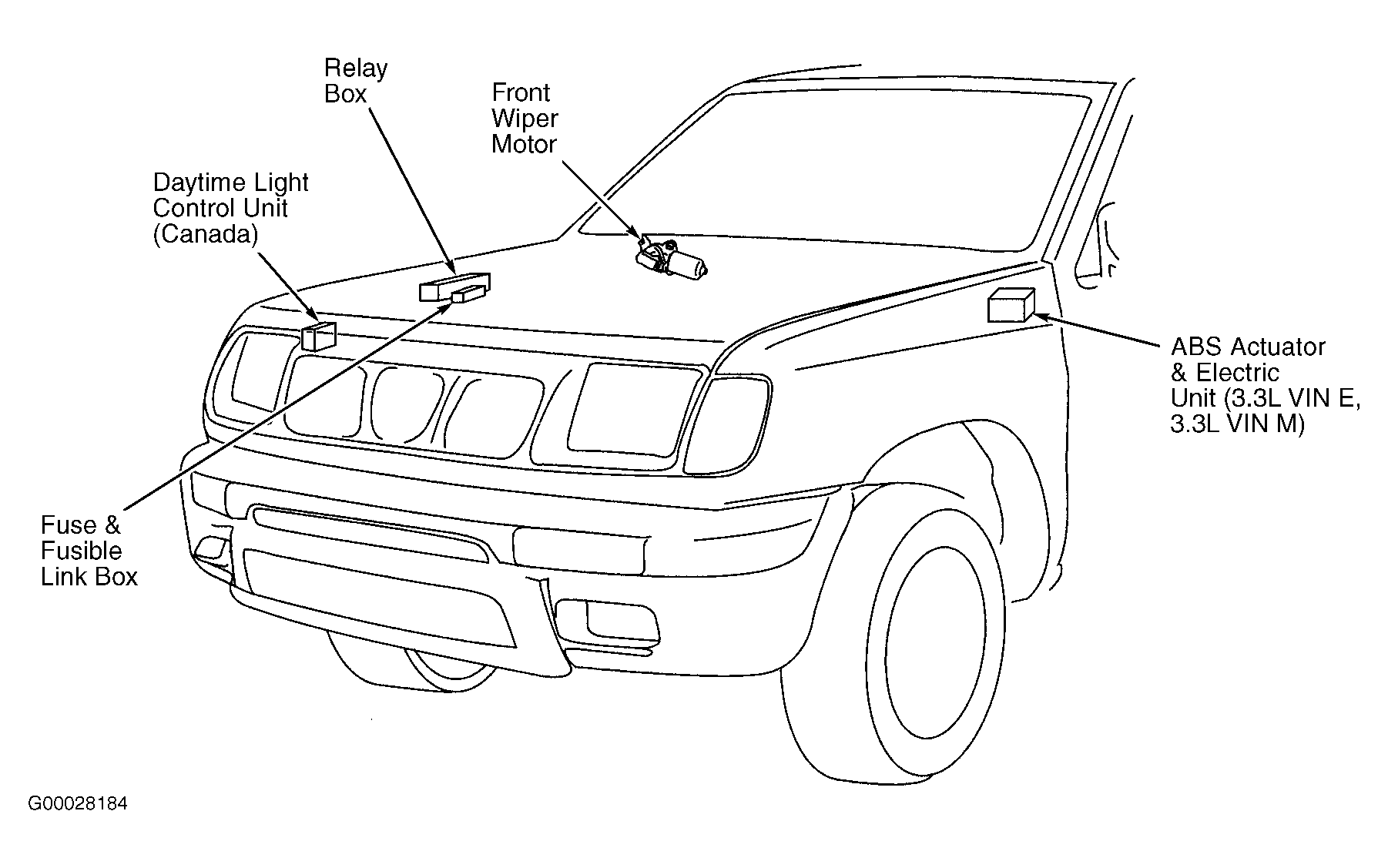 | Fuse & Fusible Link Box | At right side of engine compartment. See Figure . |
