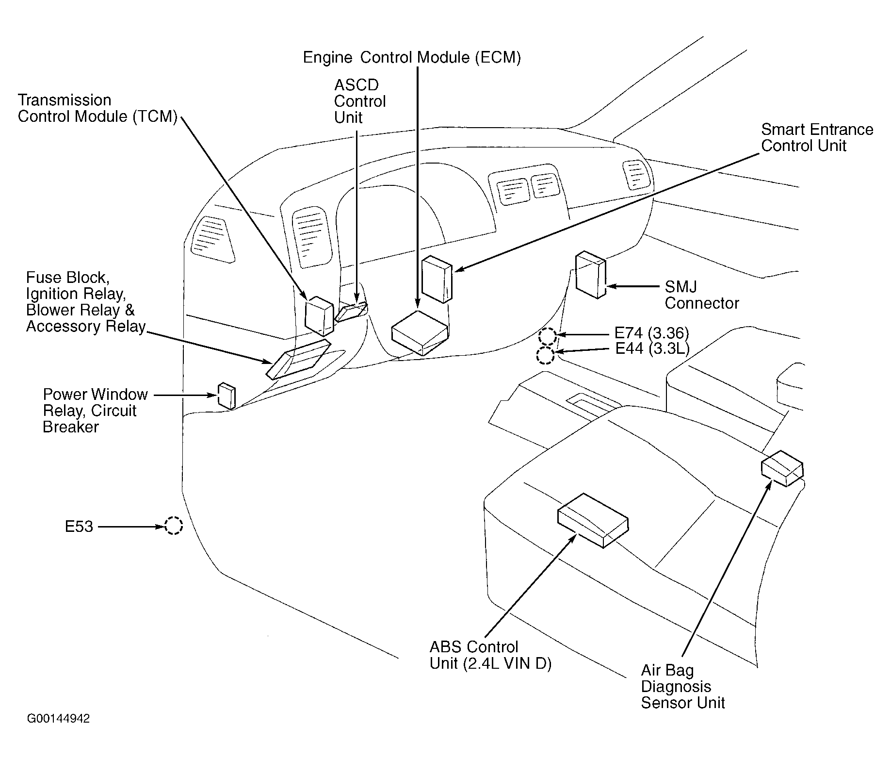 | Fuse Block | At left side of dash, behind cover. See Figure . |