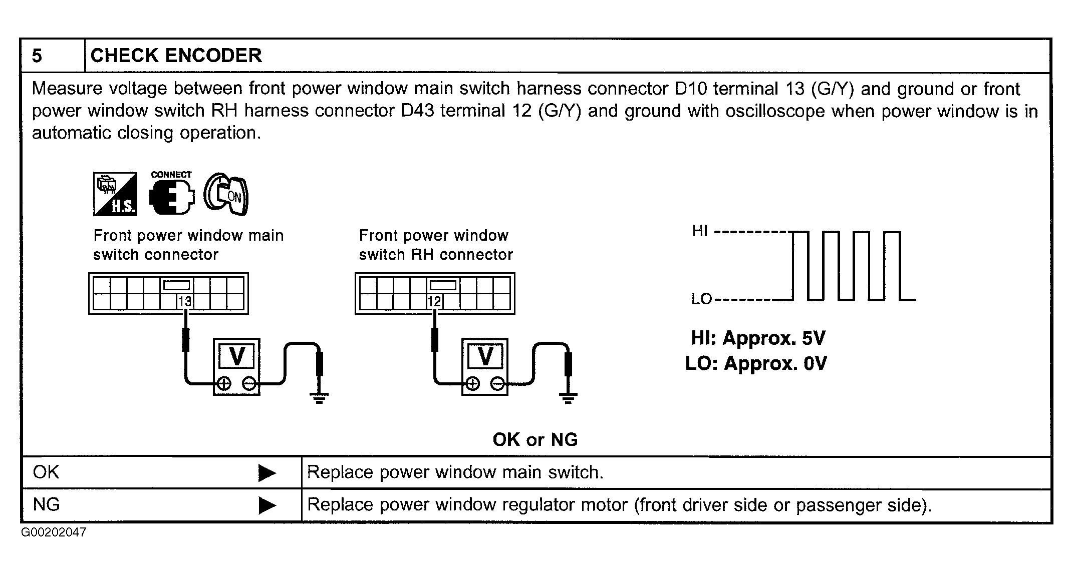 Home >> Nissan-Datsun >> 2002 >> Maxima GLE >> Repair and Diagnosis >> Body & Frame >> Windows >> Power Window System >> System Tests >> Encoder & Limit Switch Check