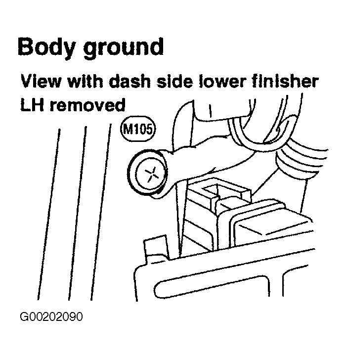 | Body Ground M105 | Behind Left Lower Dash Finisher, See Fig 2 |