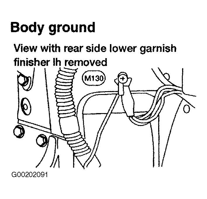 | Body Ground M130 | Behind Left Rear Lower Side Garnish Finisher, See Fig 3 |