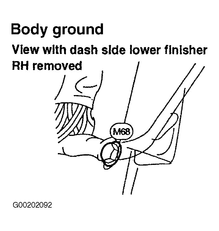 | Body Ground M68 | Behind Right Lower Dash Finisher, See Fig 1 |