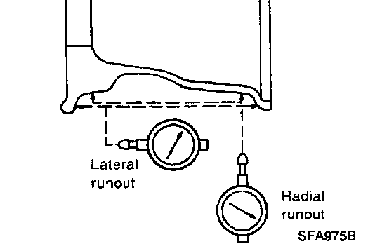 2. Check wheels for deformation, cracks and other damage. If deformed, remove wheel and check wheel runout.