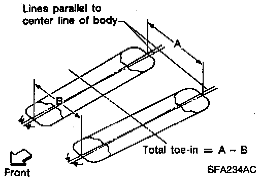 Measure toe-in using following procedure. If out of specification, inspect and replace any damaged or worn rear suspension parts.
