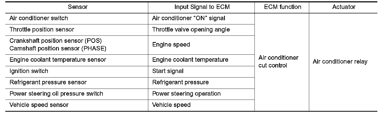 This system improves engine operation when the air conditioner is used. Under the following conditions, the air conditioner is turned off.
