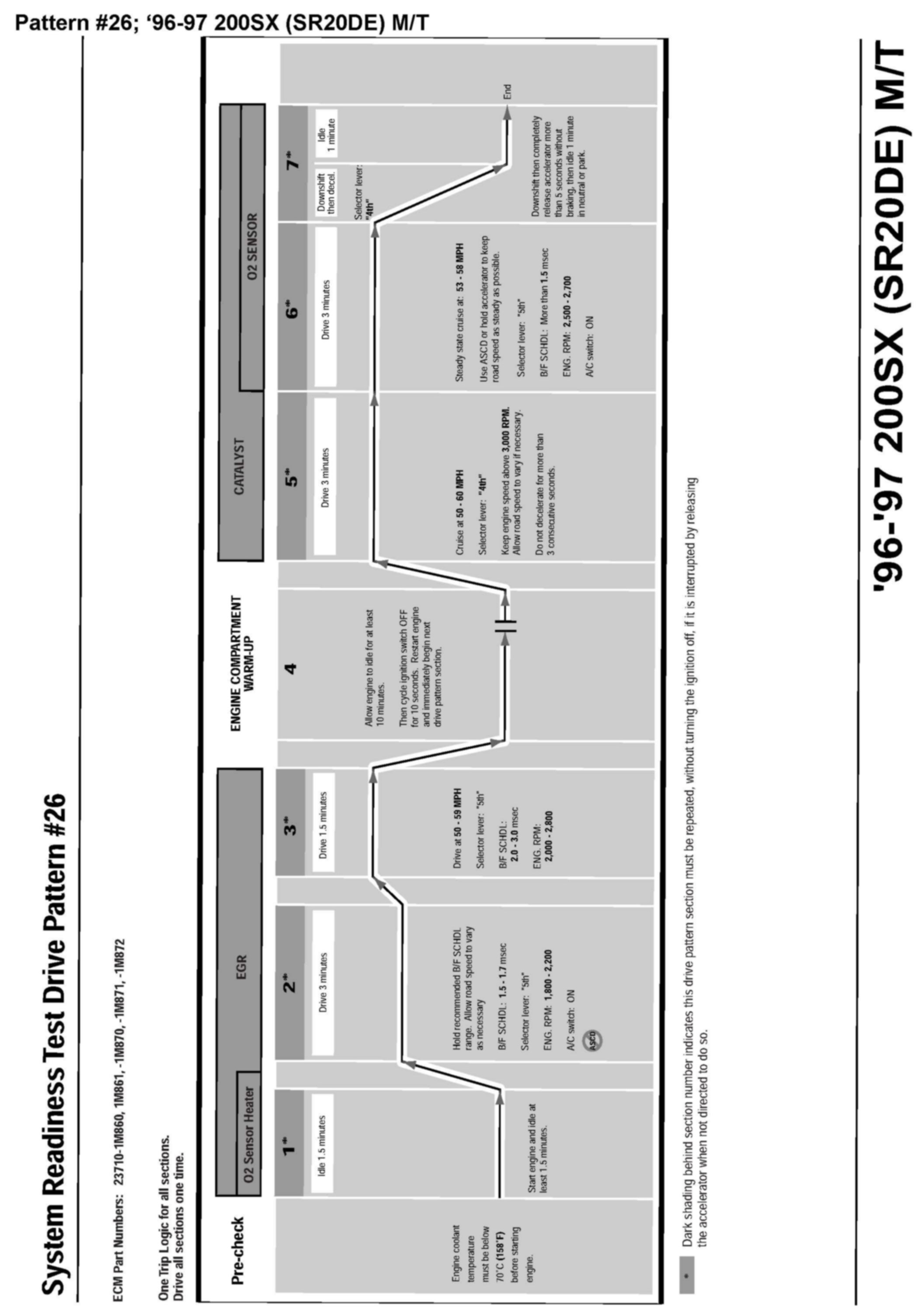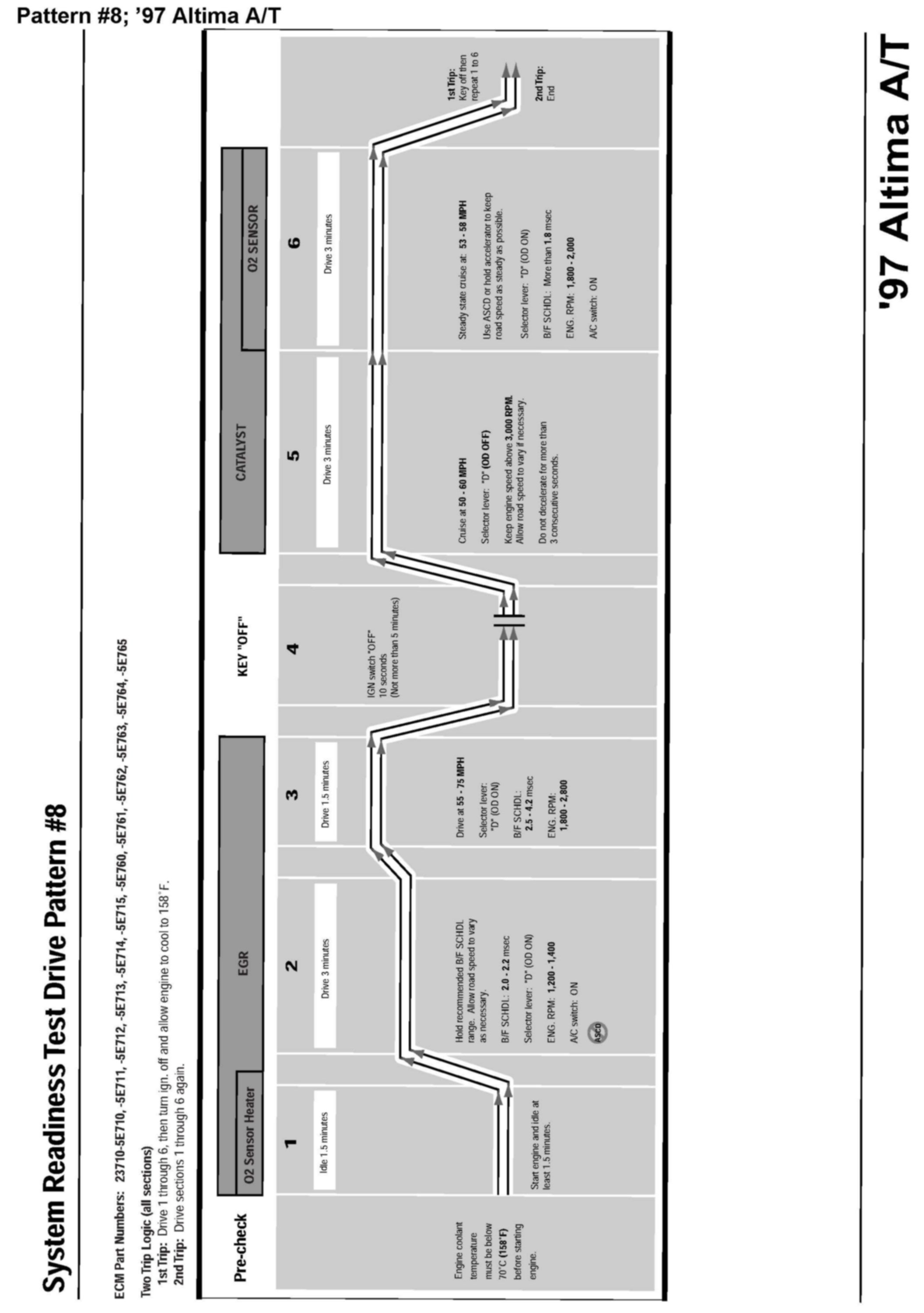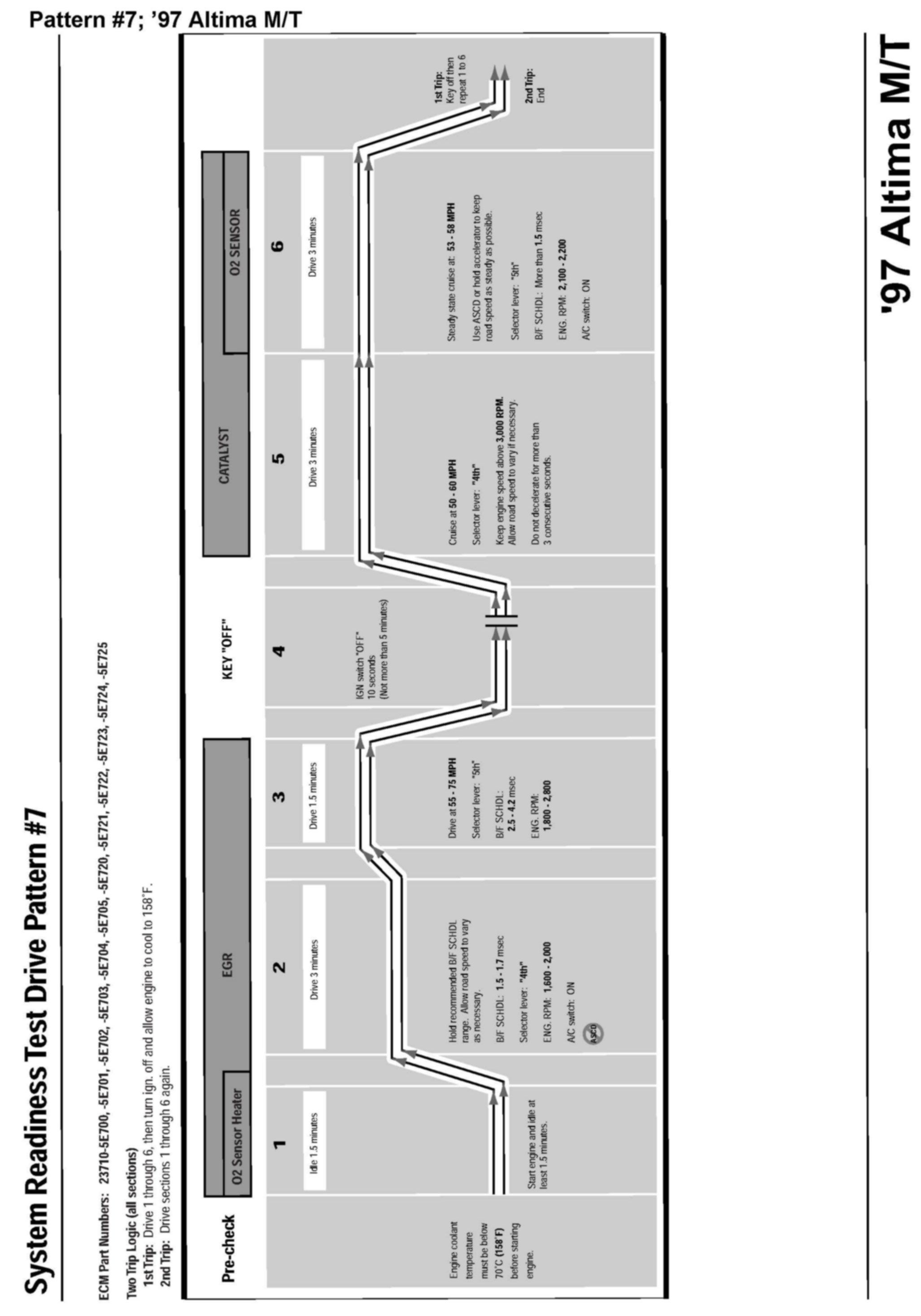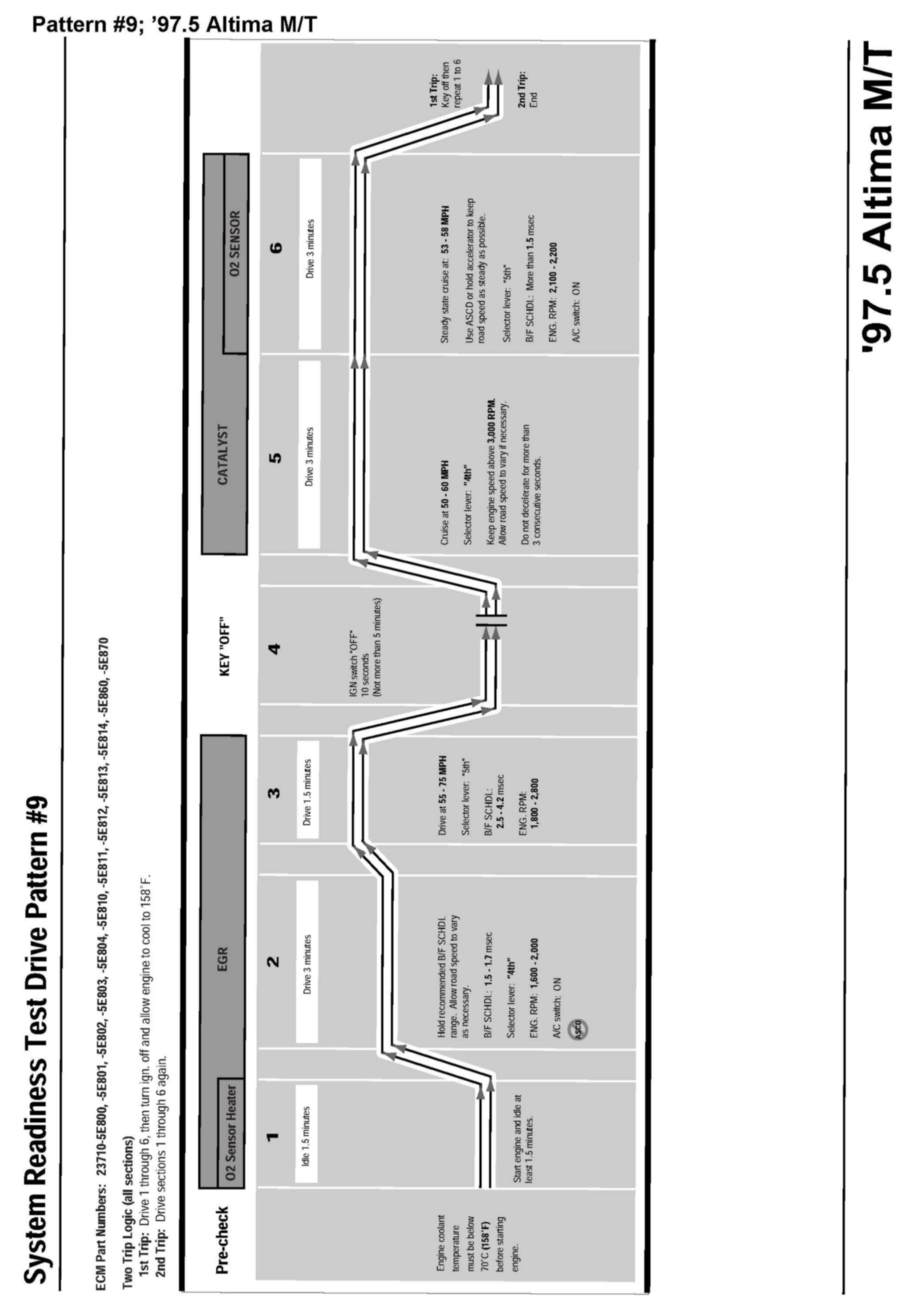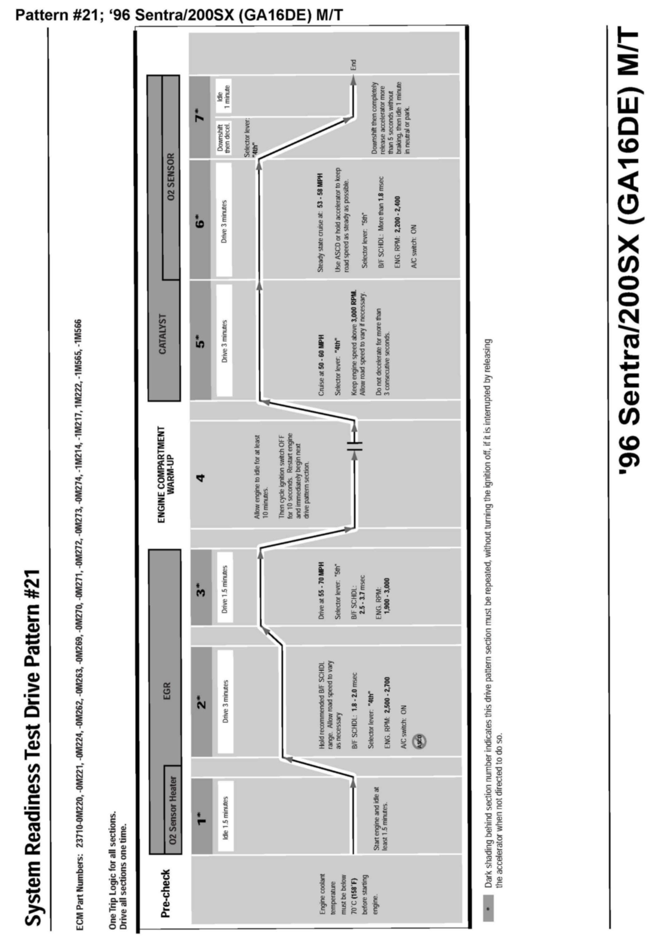 Home >> Nissan-Datsun >> 2002 >> Sentra SE-R L4-2.5L (QR25DE) >> Repair and Diagnosis >> Powertrain Management >> Computers and Control Systems >> Engine Control Module >> Technical Service Bulletins >> All Technical Service Bulletins >> Emissions - System Readiness Test (SRT) Drive Patterns >> System Readiness Test Drive Patterns