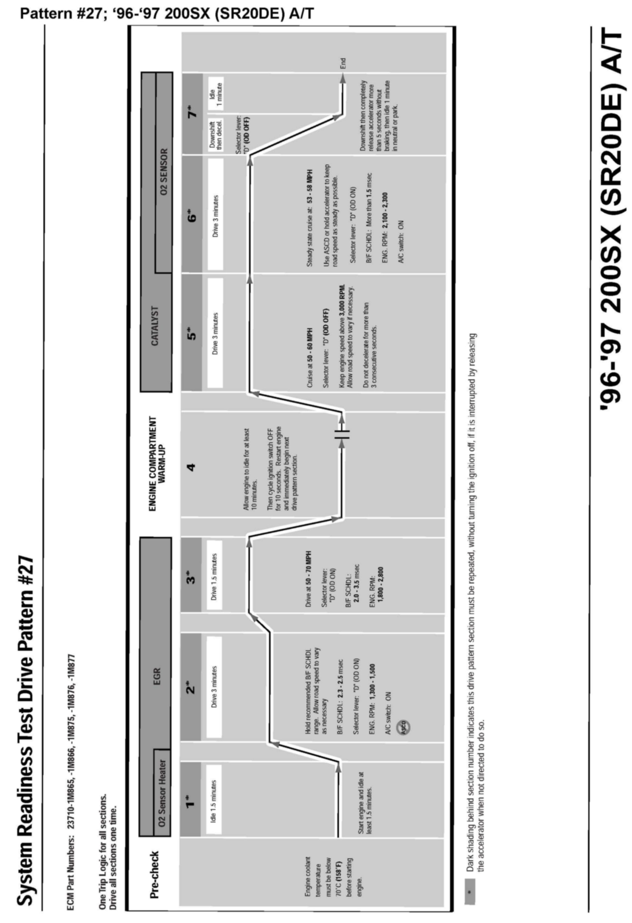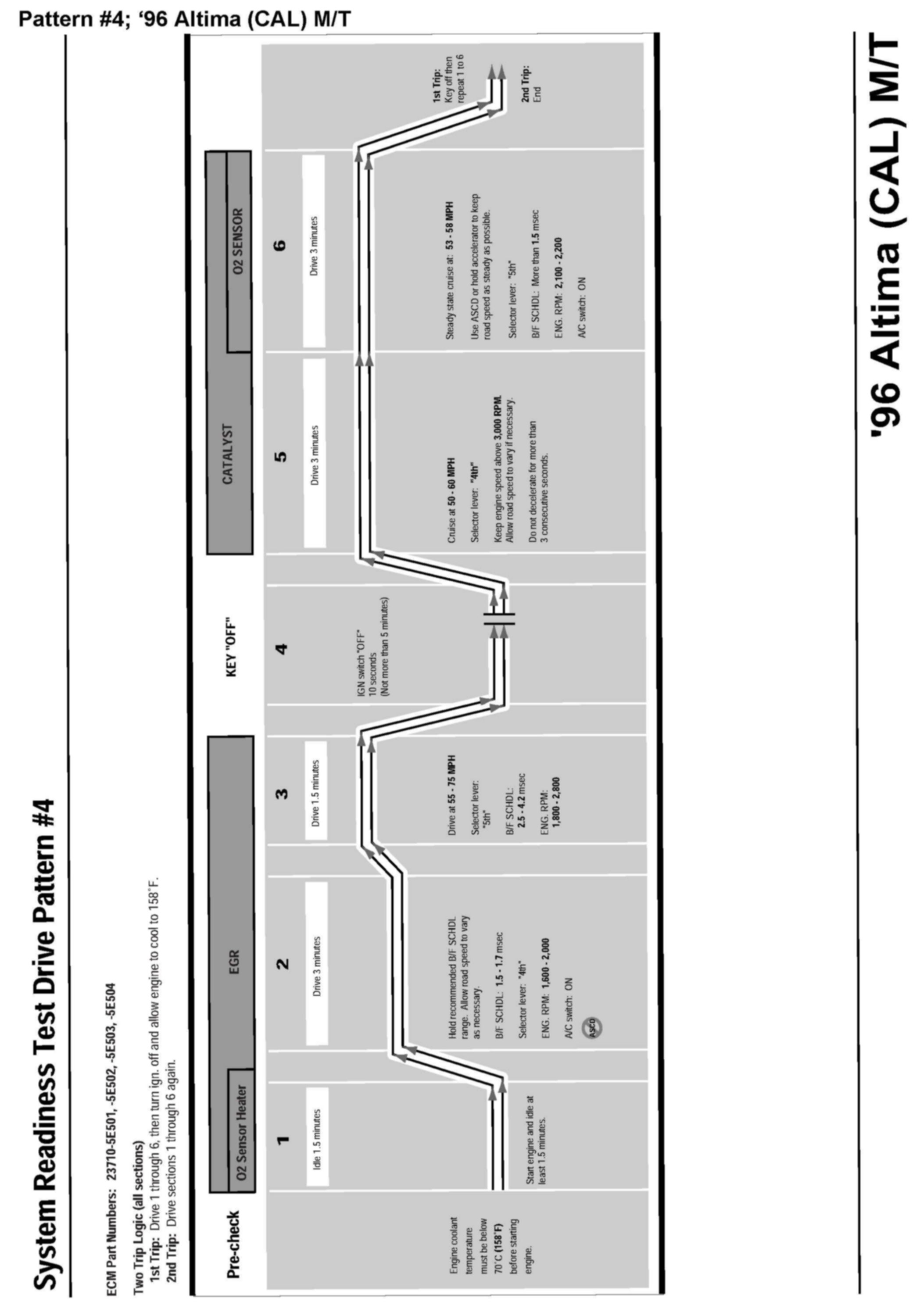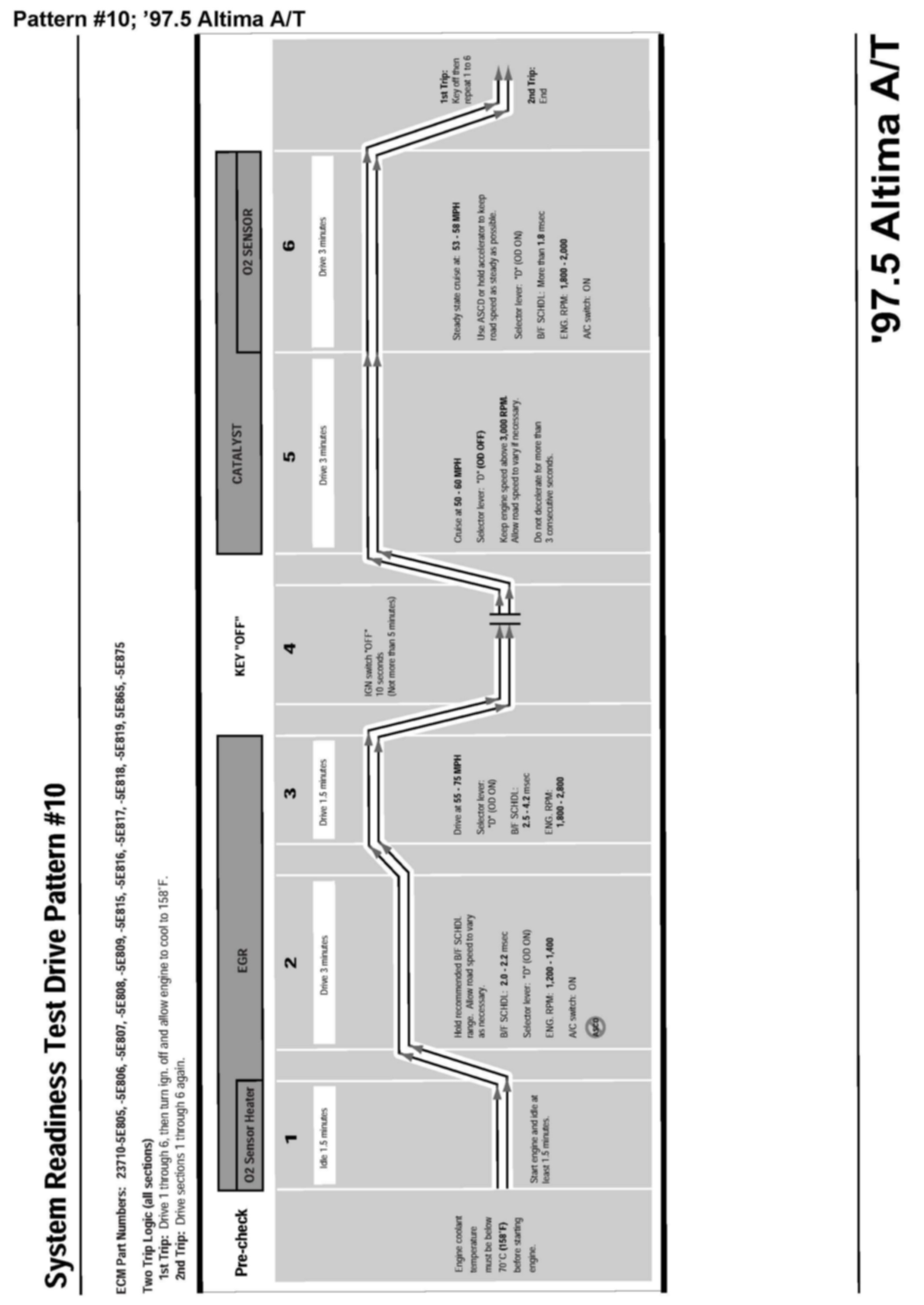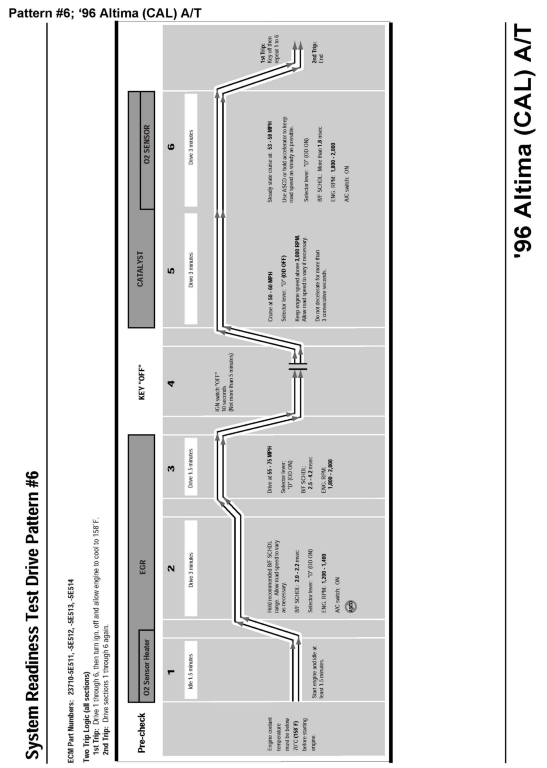 Home >> Nissan-Datsun >> 2002 >> Sentra SE-R L4-2.5L (QR25DE) >> Repair and Diagnosis >> Powertrain Management >> Computers and Control Systems >> Engine Control Module >> Technical Service Bulletins >> All Technical Service Bulletins >> Emissions - System Readiness Test (SRT) Drive Patterns >> System Readiness Test Drive Patterns