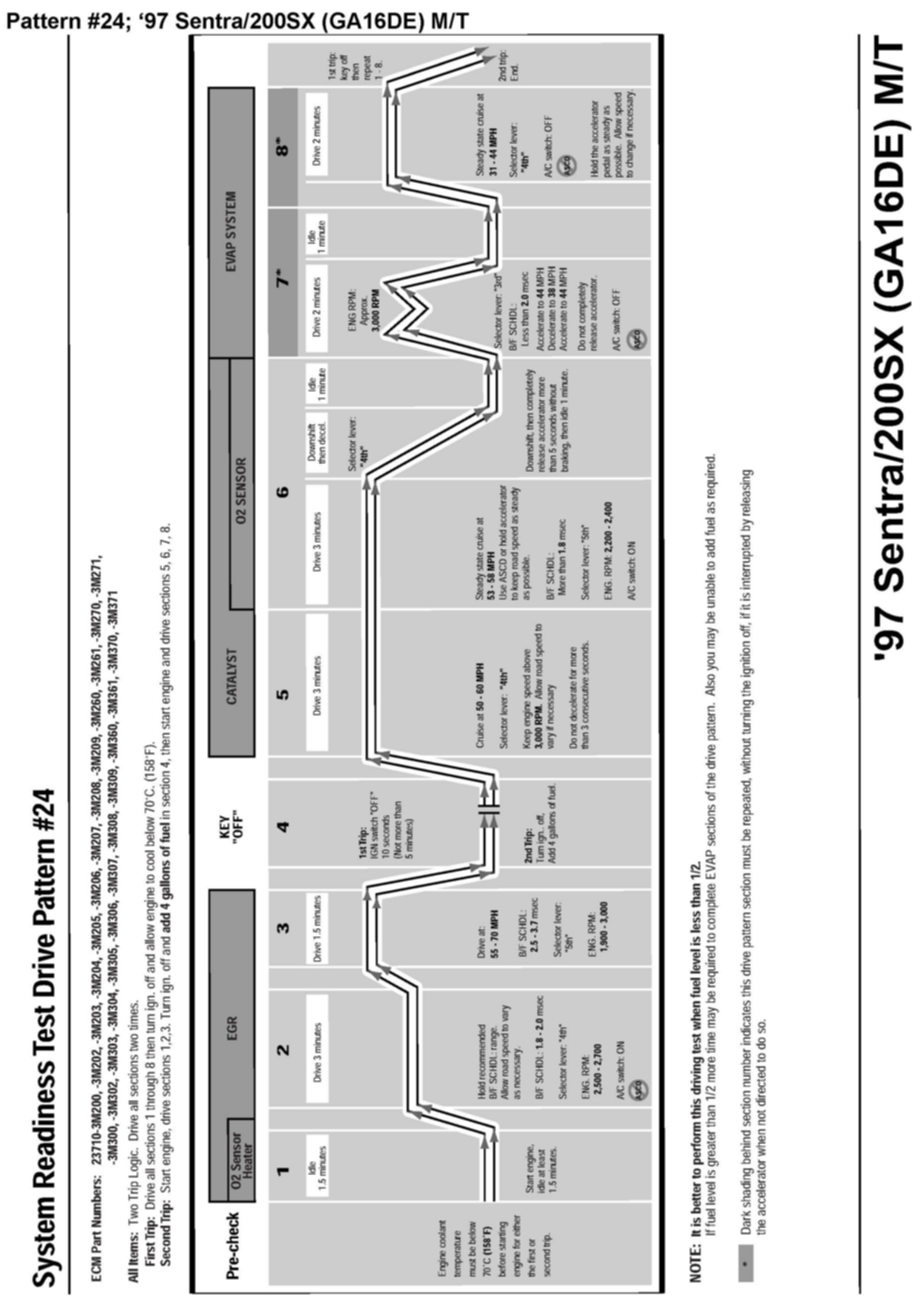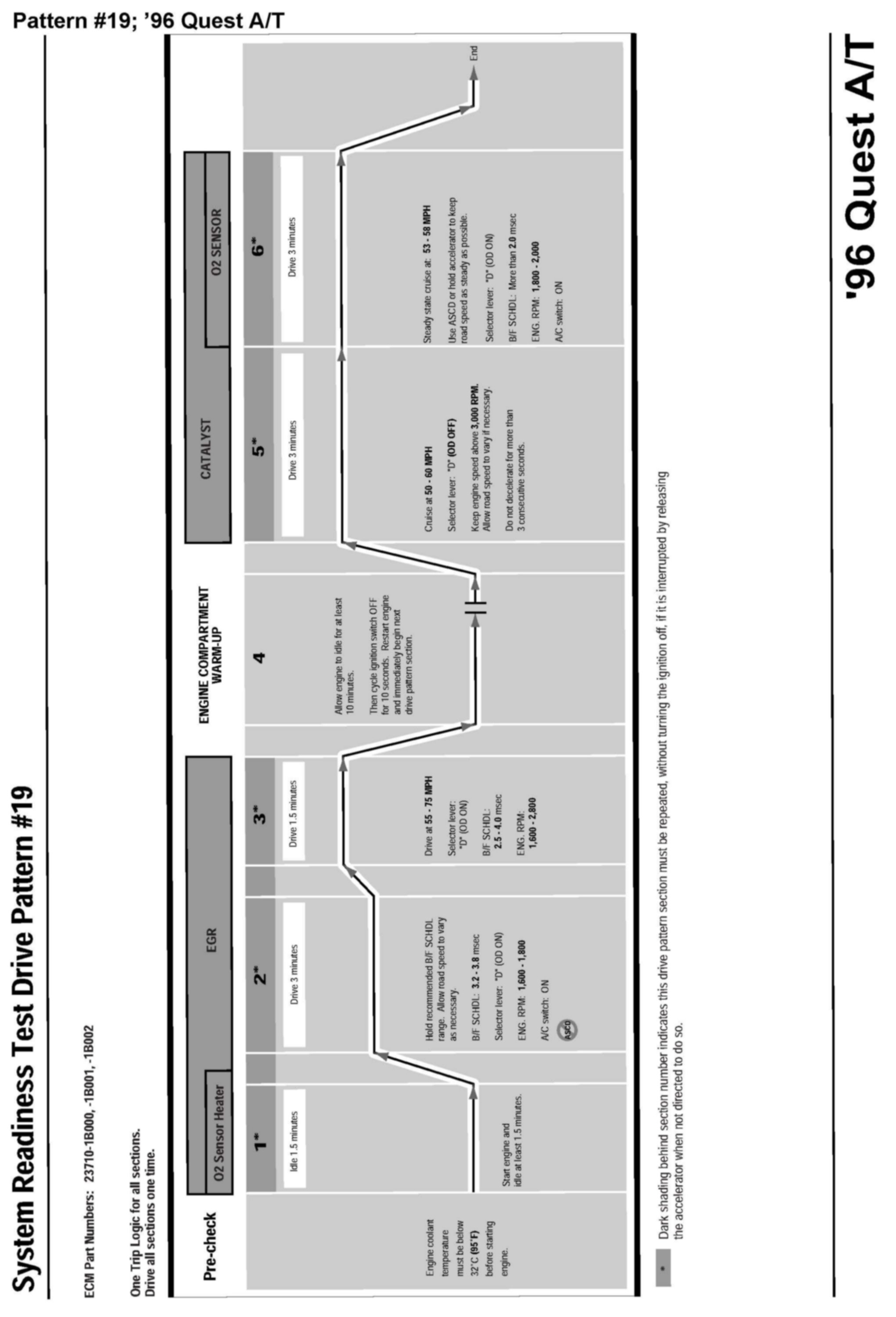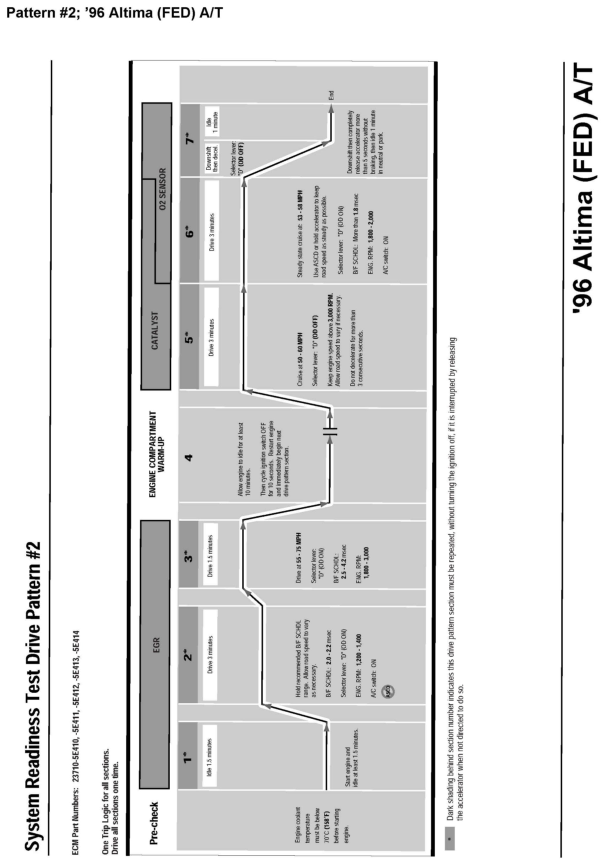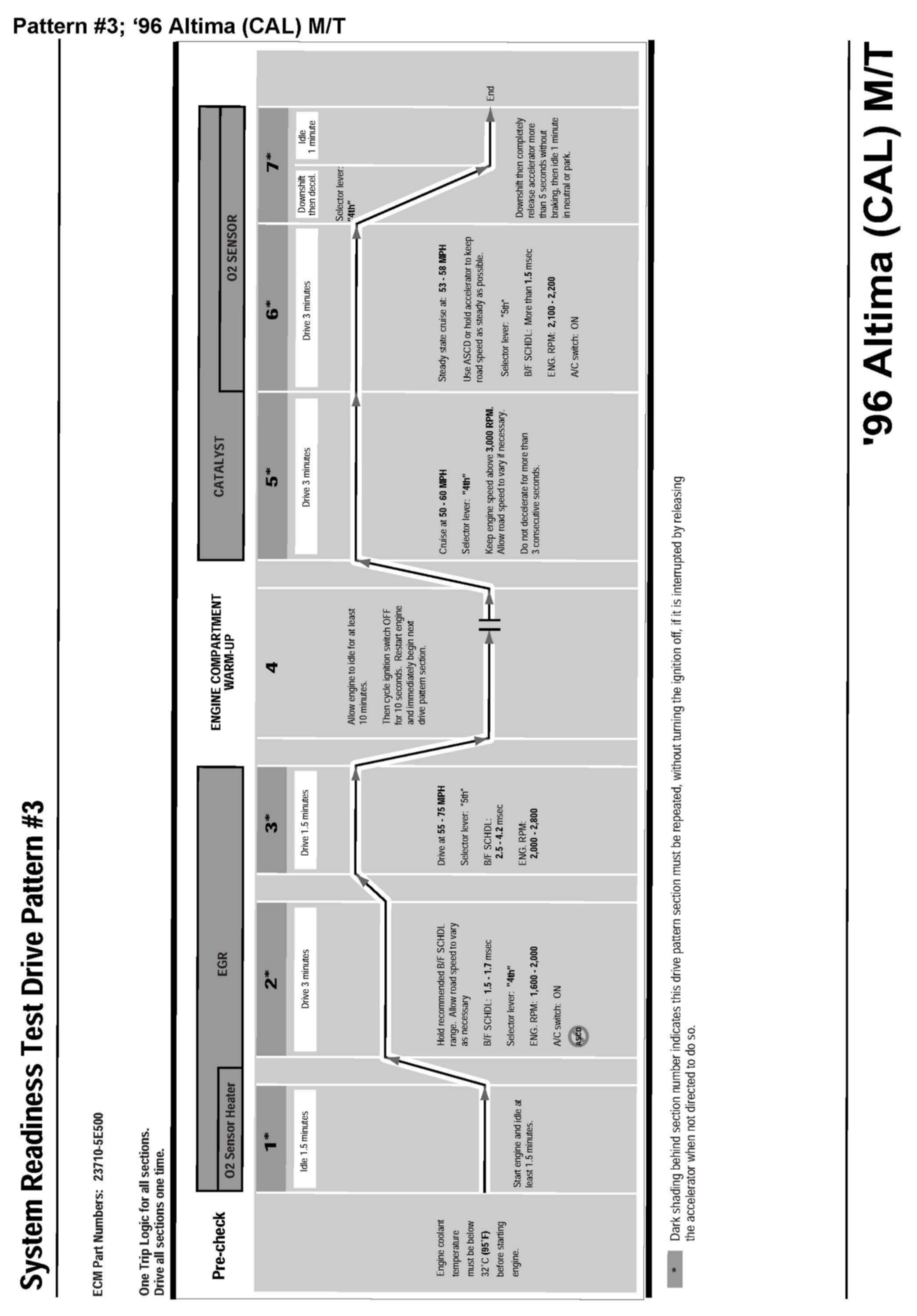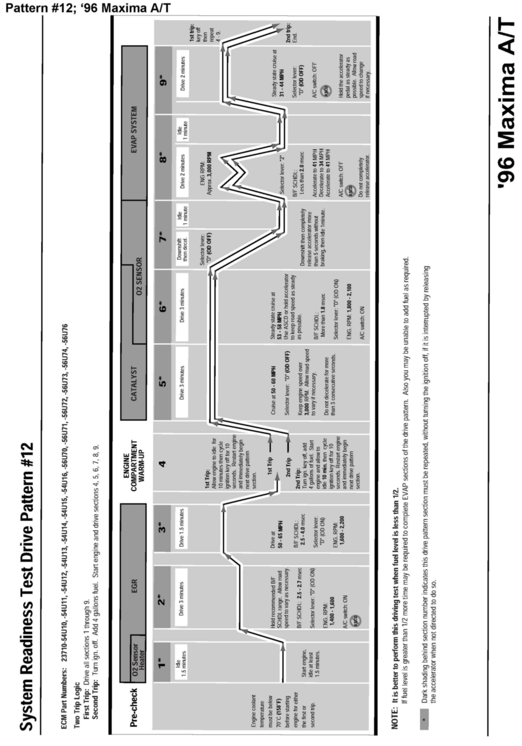 Home >> Nissan-Datsun >> 2002 >> Sentra SE-R L4-2.5L (QR25DE) >> Repair and Diagnosis >> Powertrain Management >> Computers and Control Systems >> Engine Control Module >> Technical Service Bulletins >> All Technical Service Bulletins >> Emissions - System Readiness Test (SRT) Drive Patterns >> System Readiness Test Drive Patterns