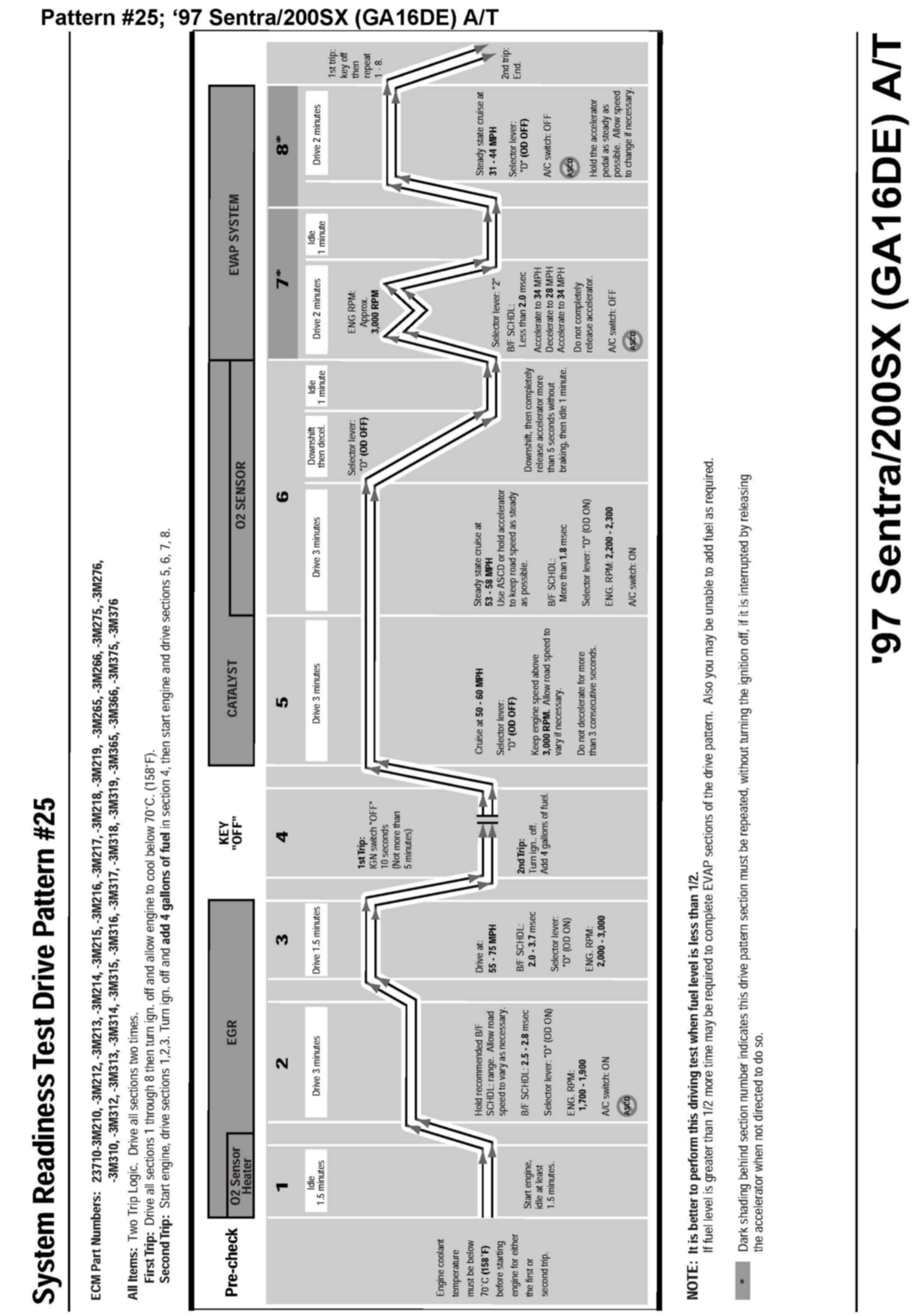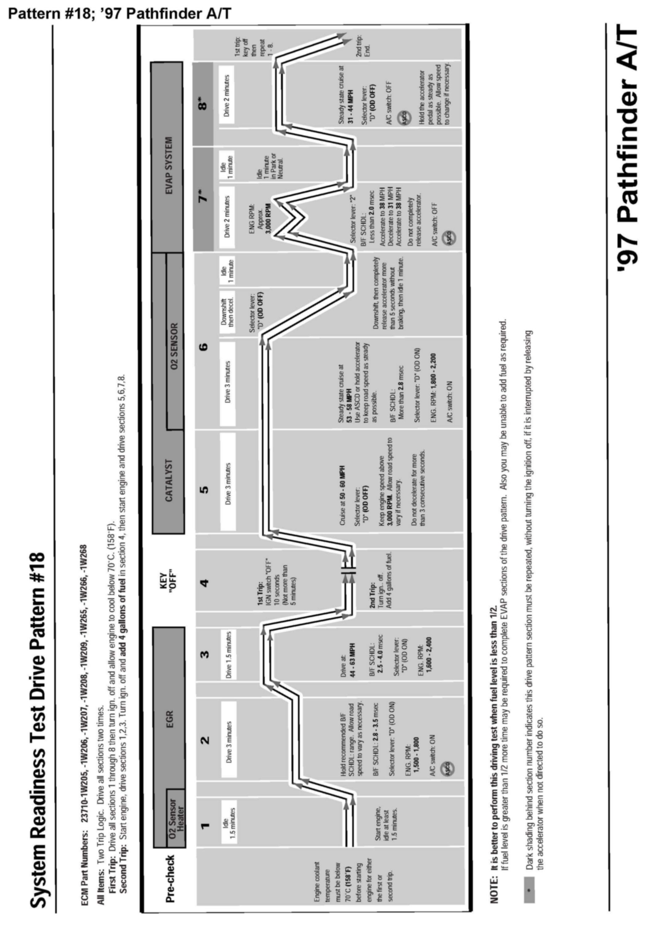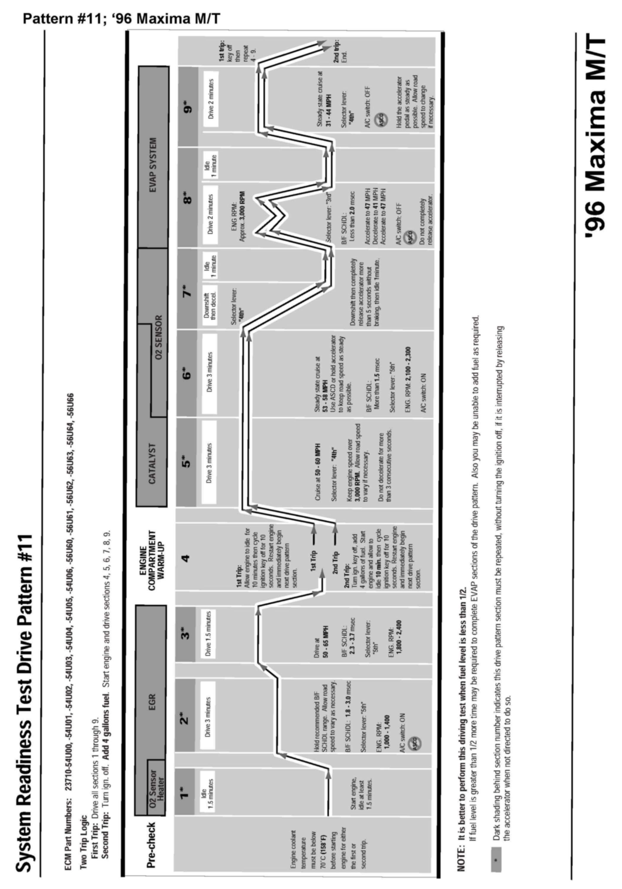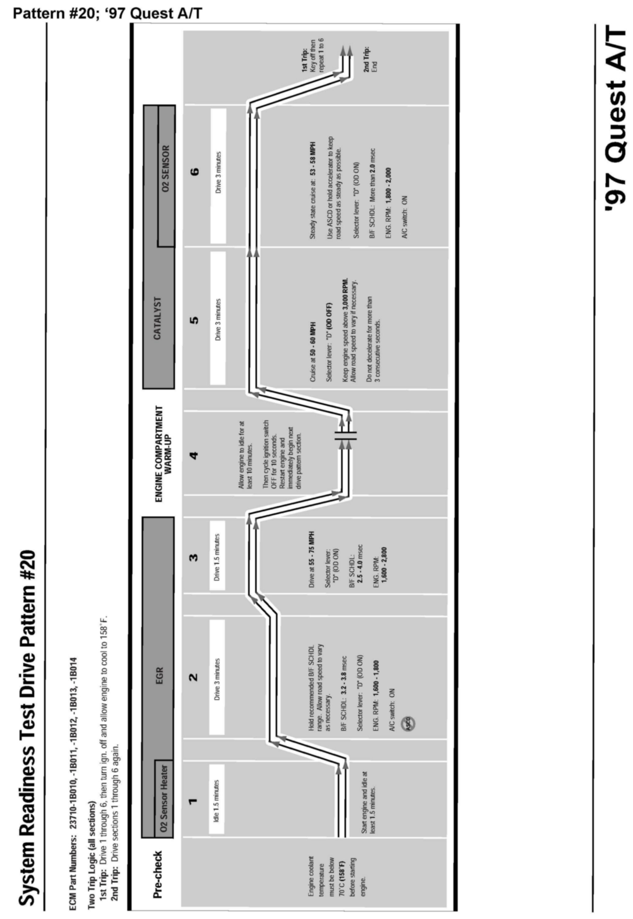 Home >> Nissan-Datsun >> 2002 >> Sentra SE-R L4-2.5L (QR25DE) >> Repair and Diagnosis >> Powertrain Management >> Computers and Control Systems >> Engine Control Module >> Technical Service Bulletins >> All Technical Service Bulletins >> Emissions - System Readiness Test (SRT) Drive Patterns >> System Readiness Test Drive Patterns