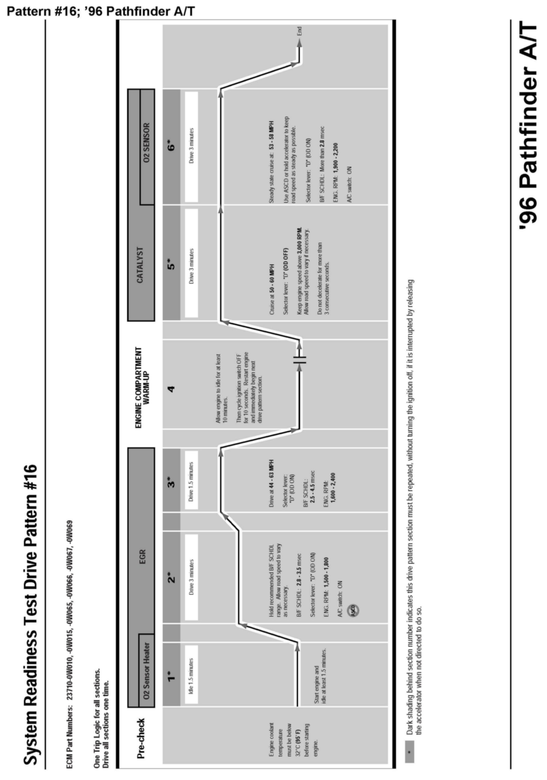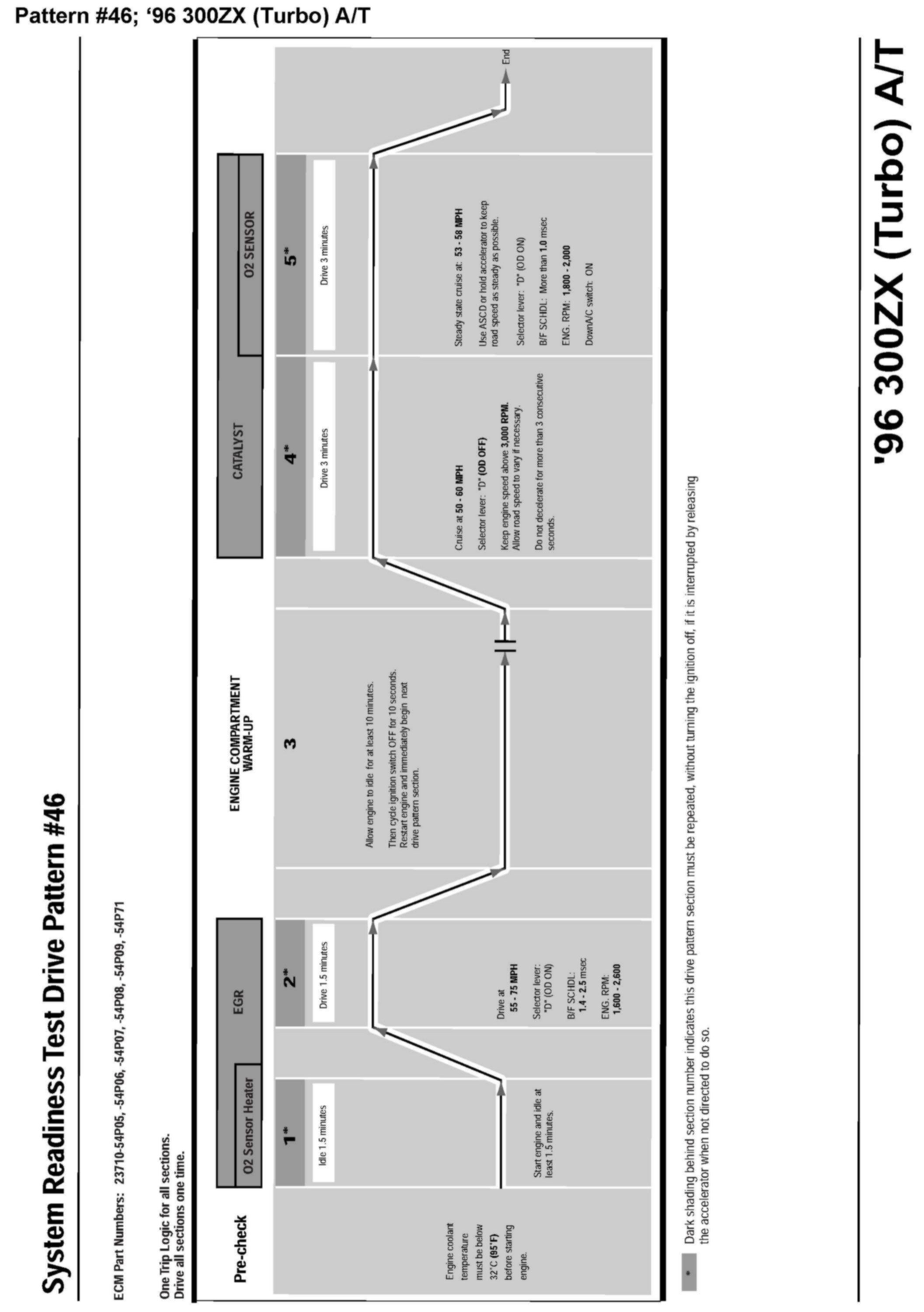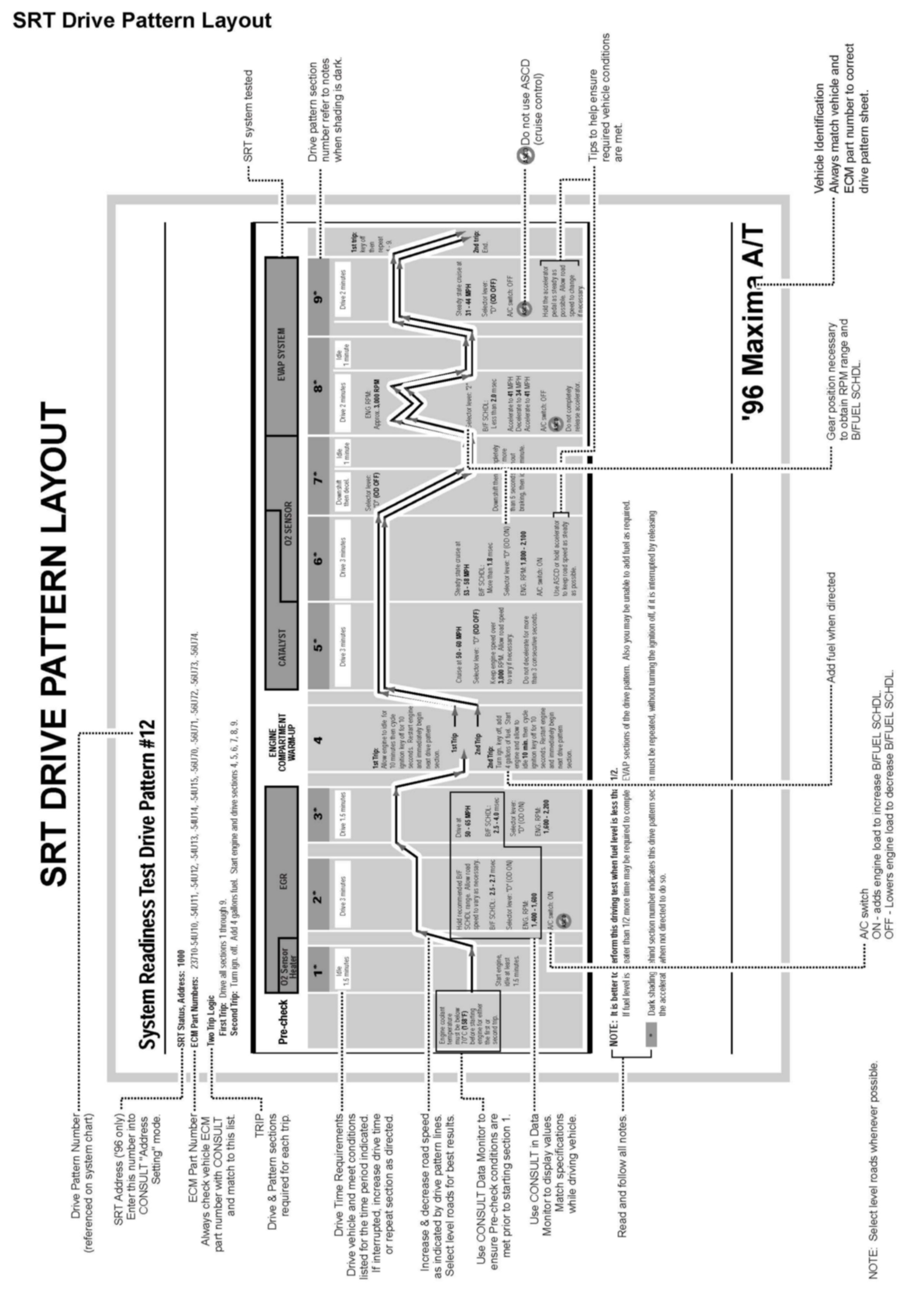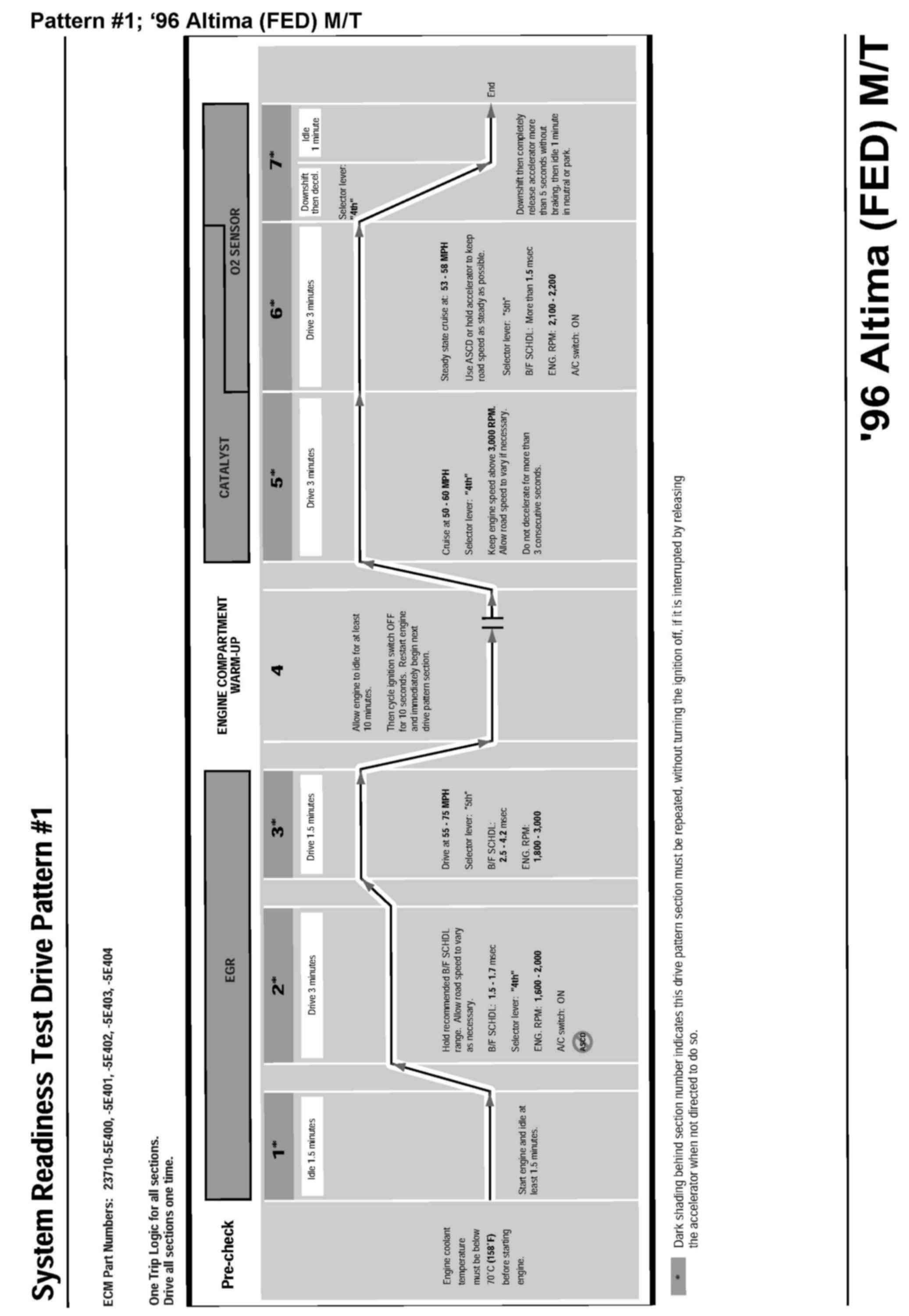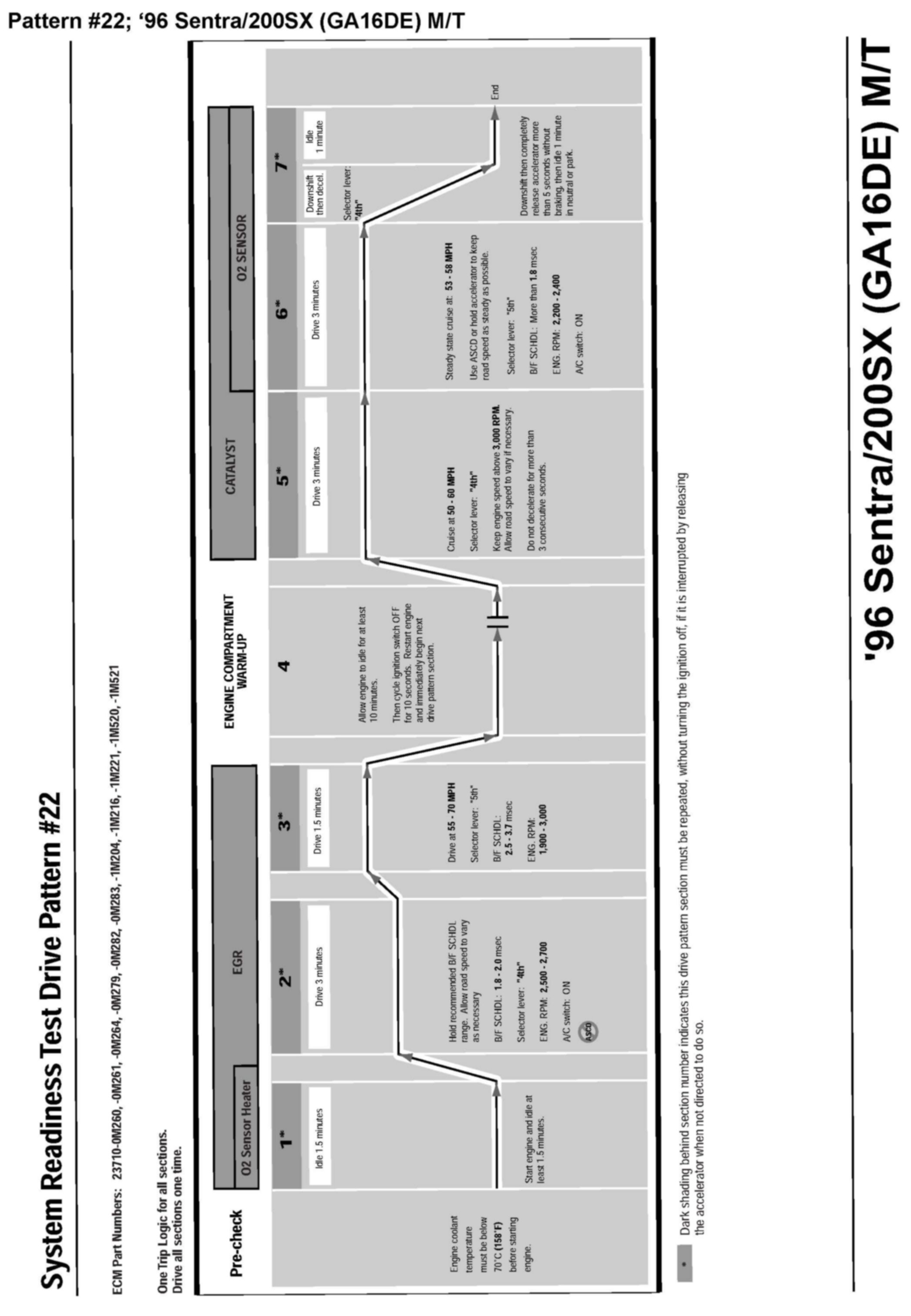 Home >> Nissan-Datsun >> 2002 >> Sentra SE-R L4-2.5L (QR25DE) >> Repair and Diagnosis >> Powertrain Management >> Computers and Control Systems >> Engine Control Module >> Technical Service Bulletins >> All Technical Service Bulletins >> Emissions - System Readiness Test (SRT) Drive Patterns >> System Readiness Test Drive Patterns